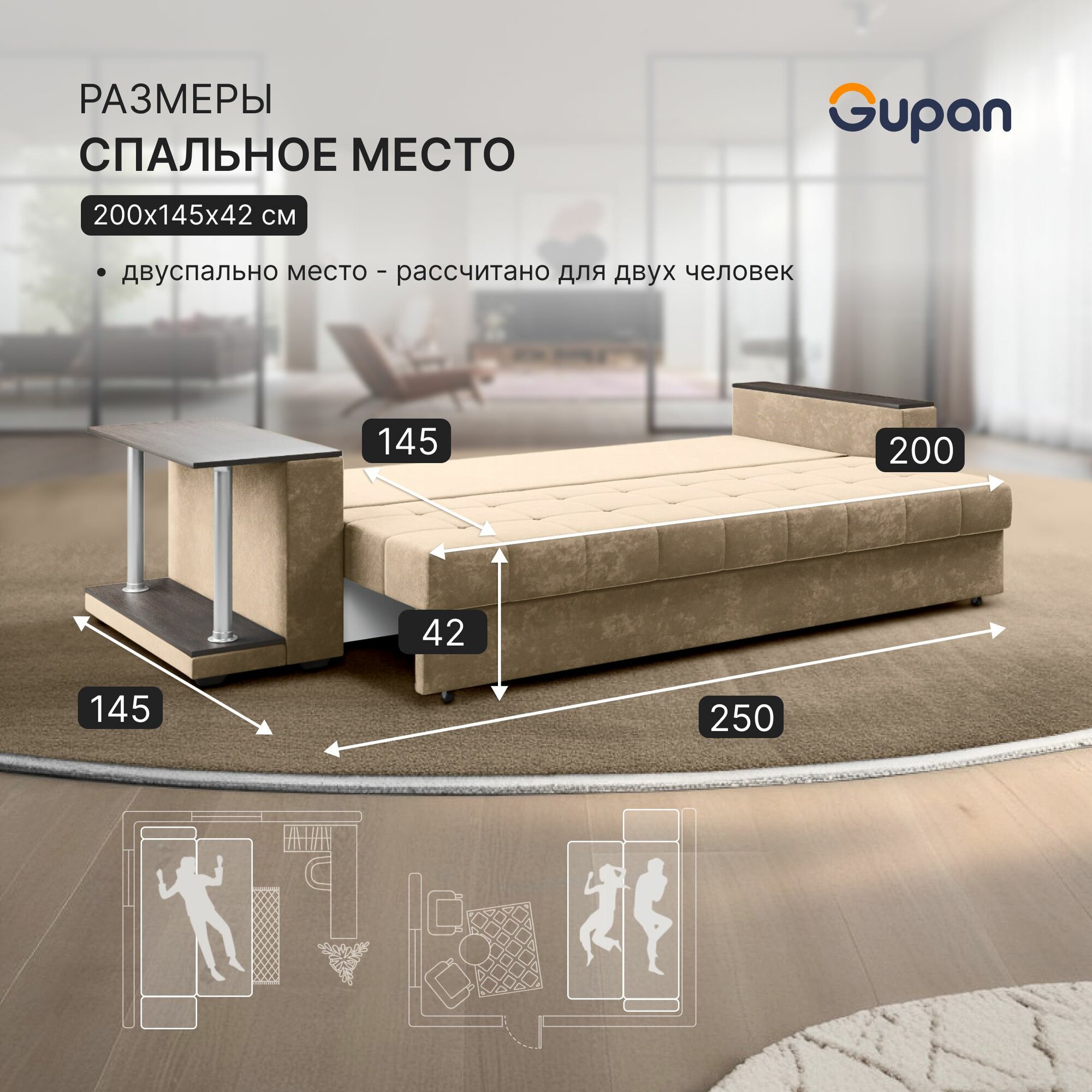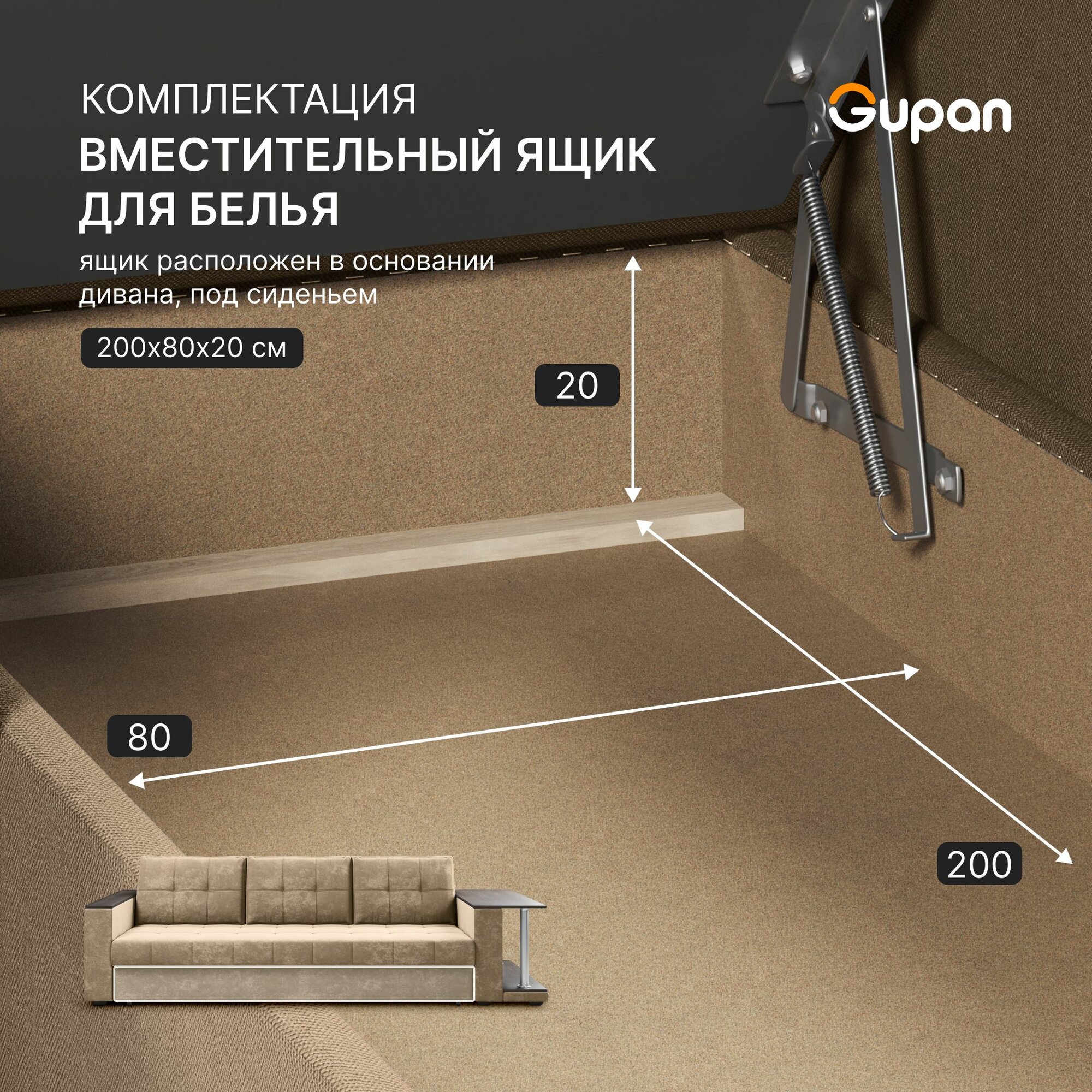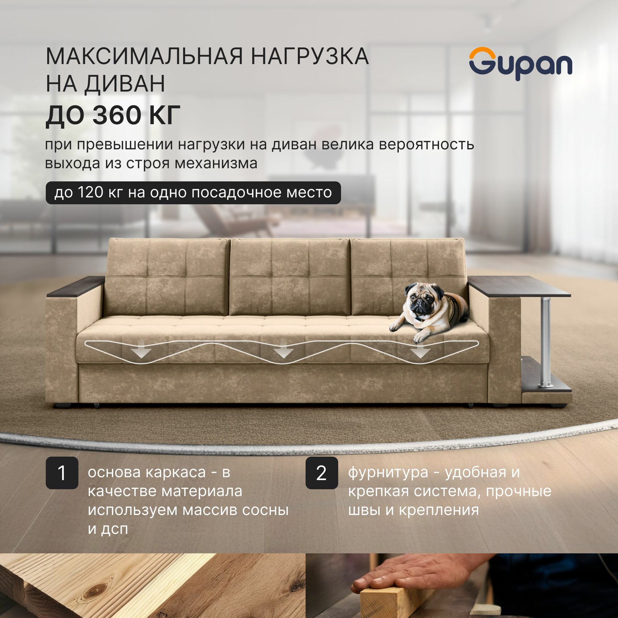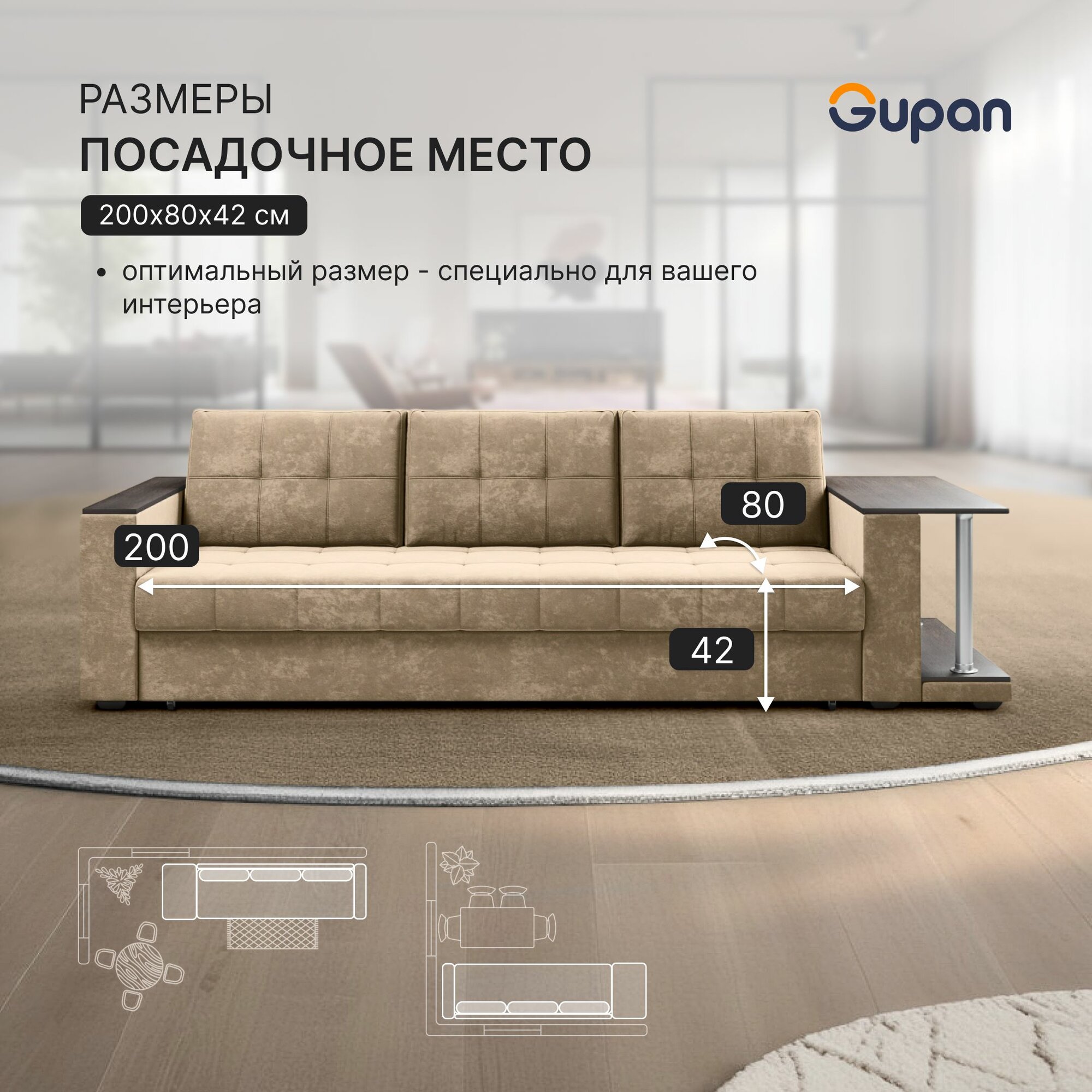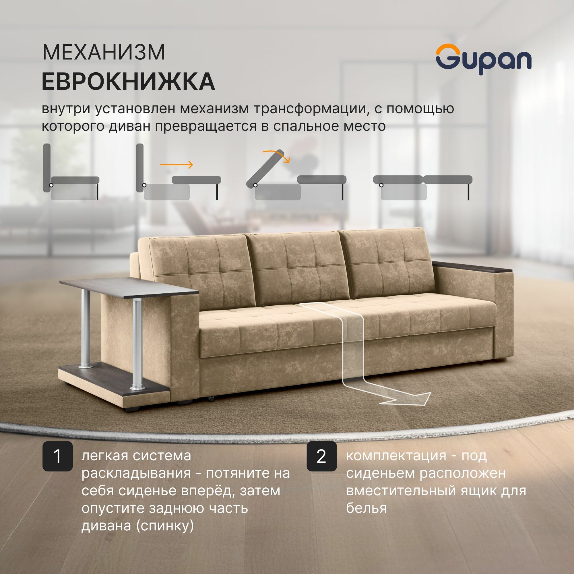 Диван кровать Gupan Атланта Классик Люкс со столом, Велюр Bingo Desert, раскладной, механизм еврокнижка, беспружинный, с ящиком для белья