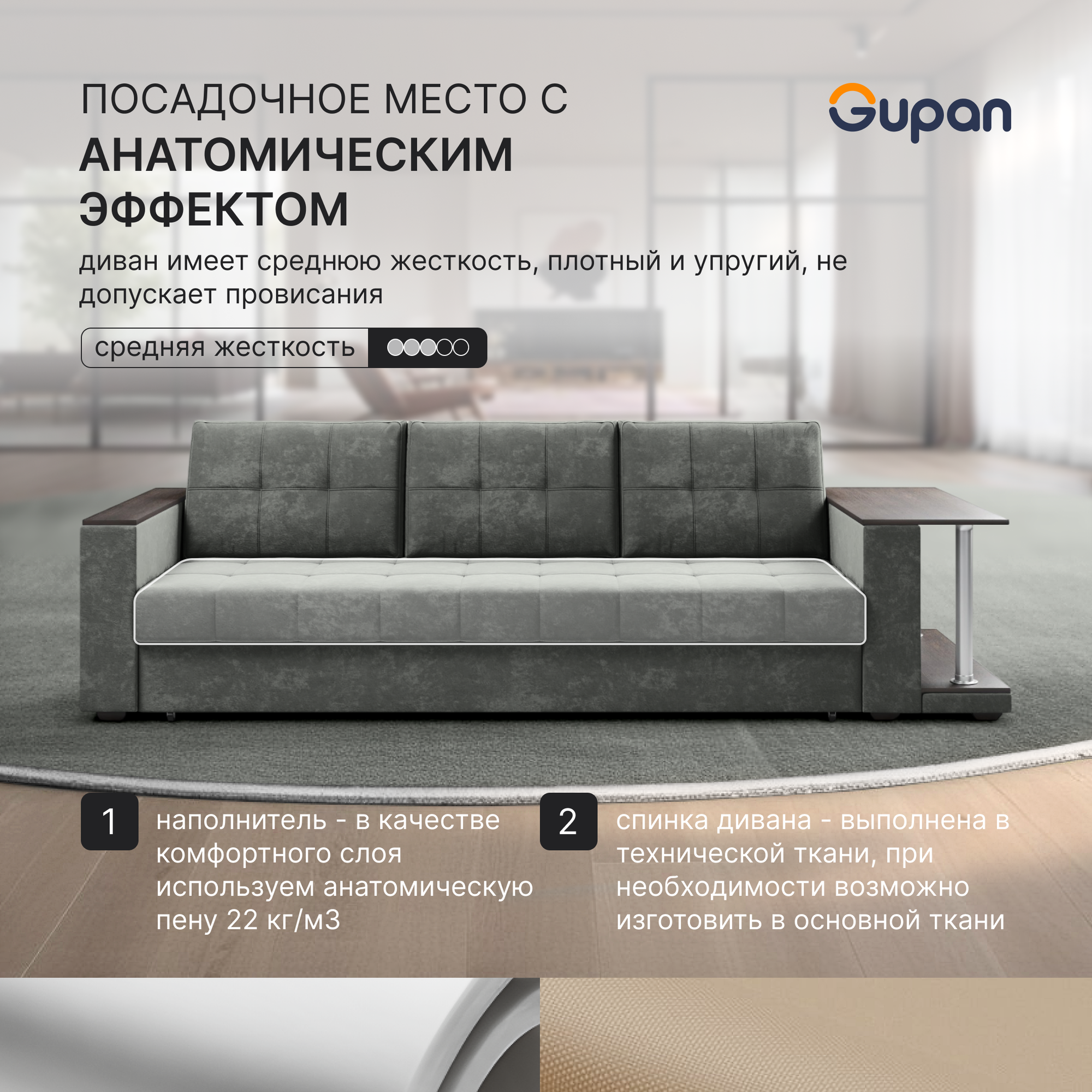 Диван кровать Gupan Атланта Классик Люкс со столом Рогожка Savana Mouse, раскладной, механизм еврокнижка, беспружинный, с ящиком для белья