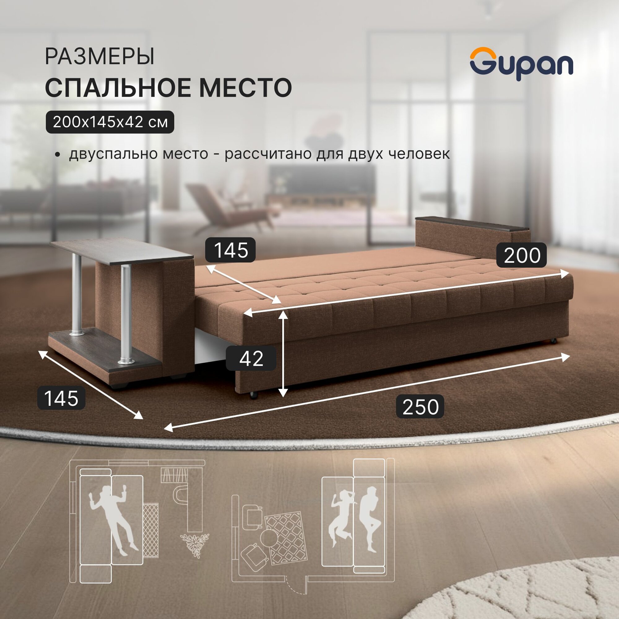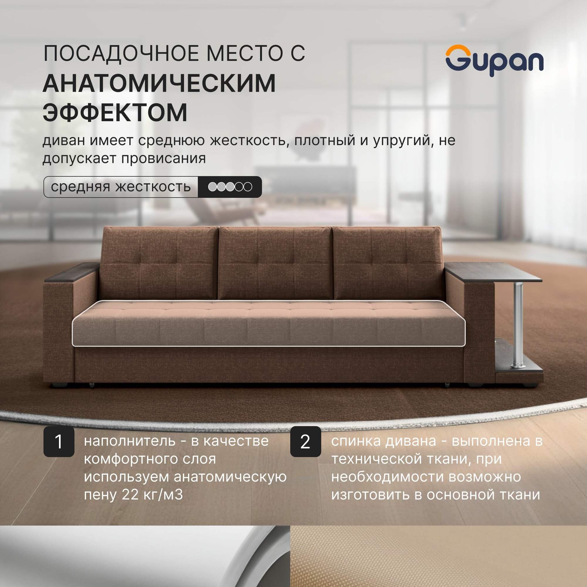 Диван кровать Gupan Атланта Классик Люкс со столом Рогожка Savana Java, раскладной, механизм еврокнижка, беспружинный, с ящиком для белья
