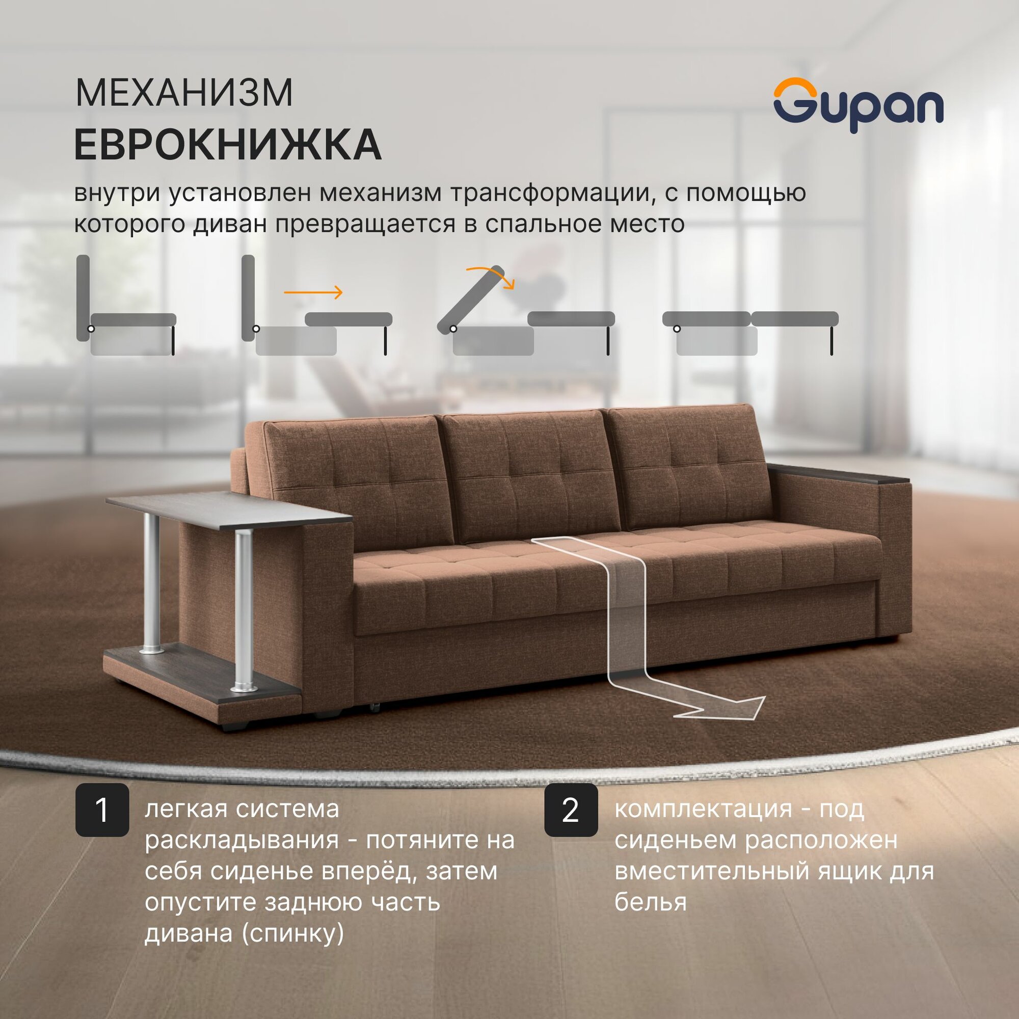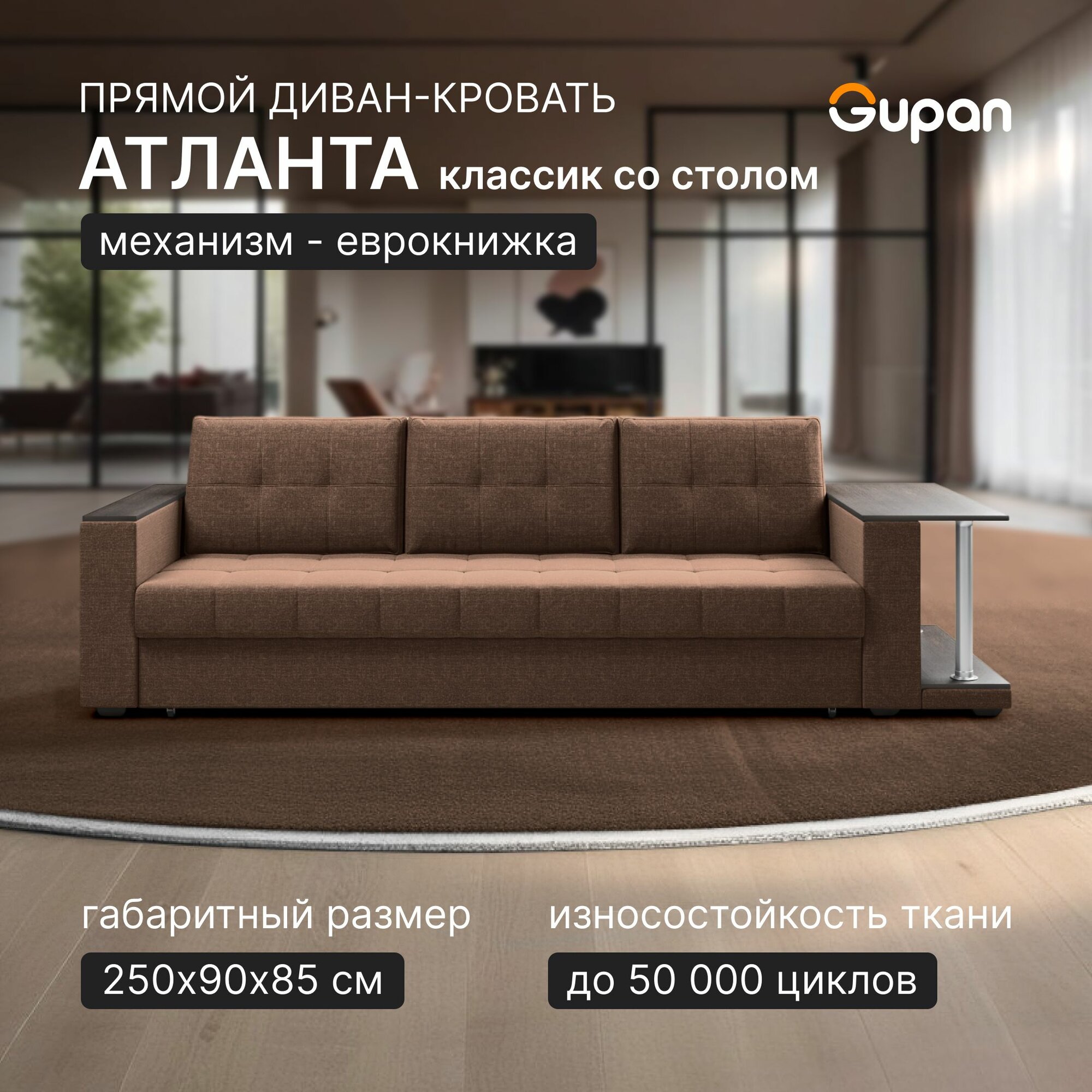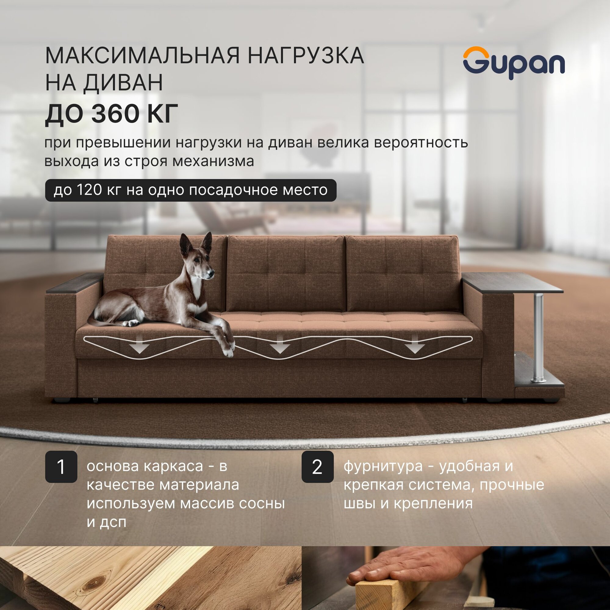 Купить Диван кровать Gupan Атланта Классик Люкс со столом, материал Рогожка Savana Chocolate, раскладной, механизм еврокнижка, беспружинный, с ящиком для белья