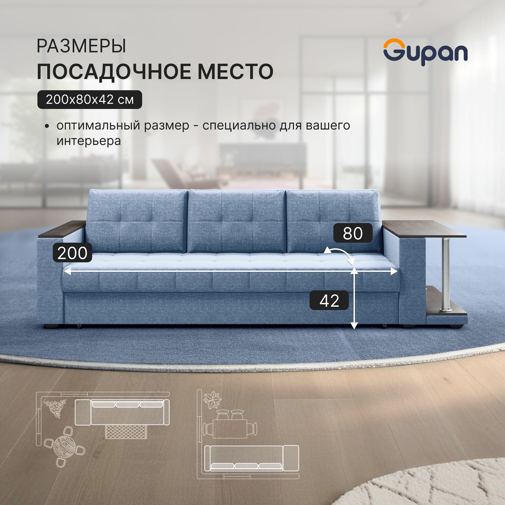 Диван кровать Gupan Атланта Классик Люкс со столом Рогожка Savana Denim, раскладной, механизм еврокнижка, беспружинный, с ящиком для белья