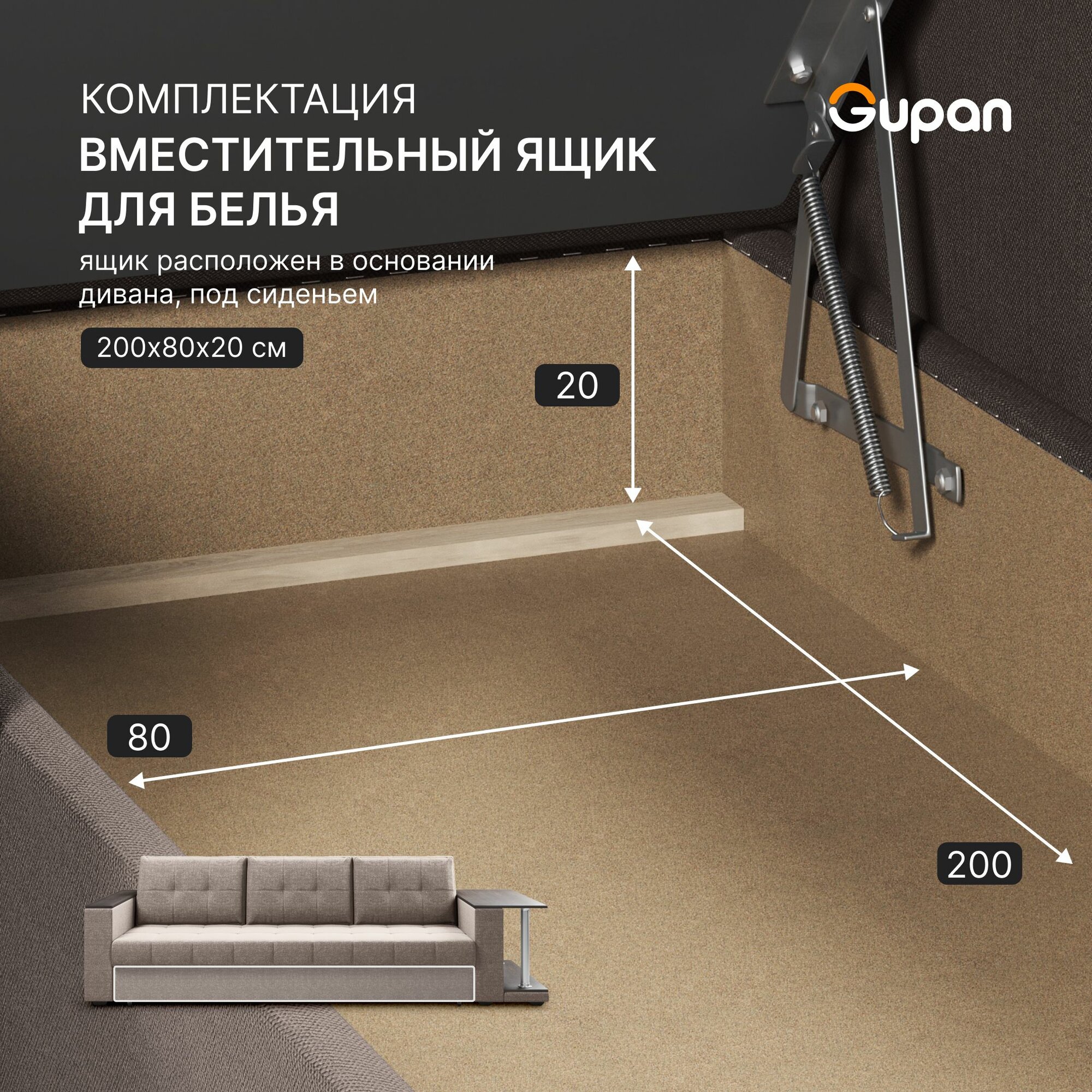 Купить Диван кровать Gupan Атланта Классик Люкс со столом Рогожка Savana Latte, раскладной, механизм еврокнижка, беспружинный, с ящиком для белья