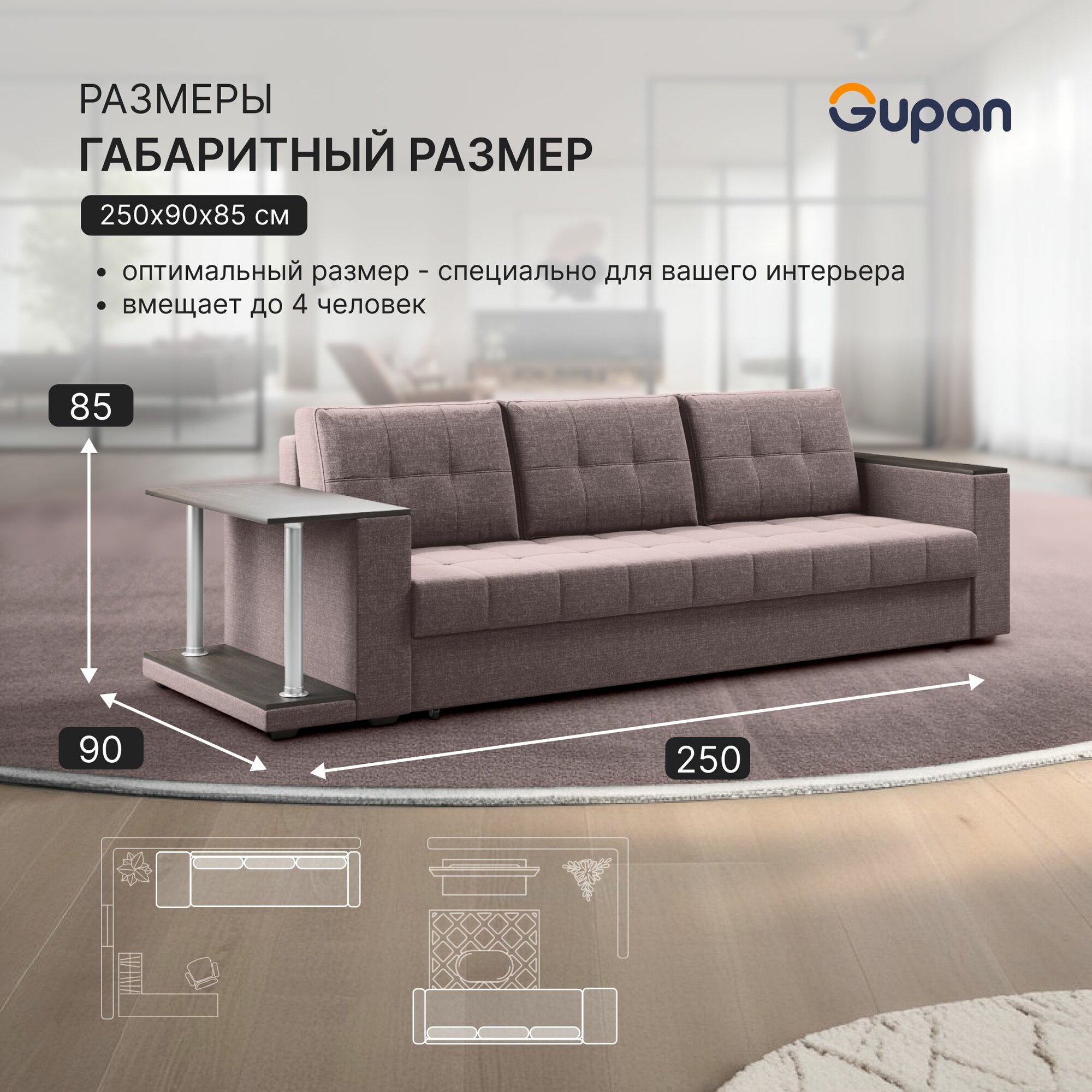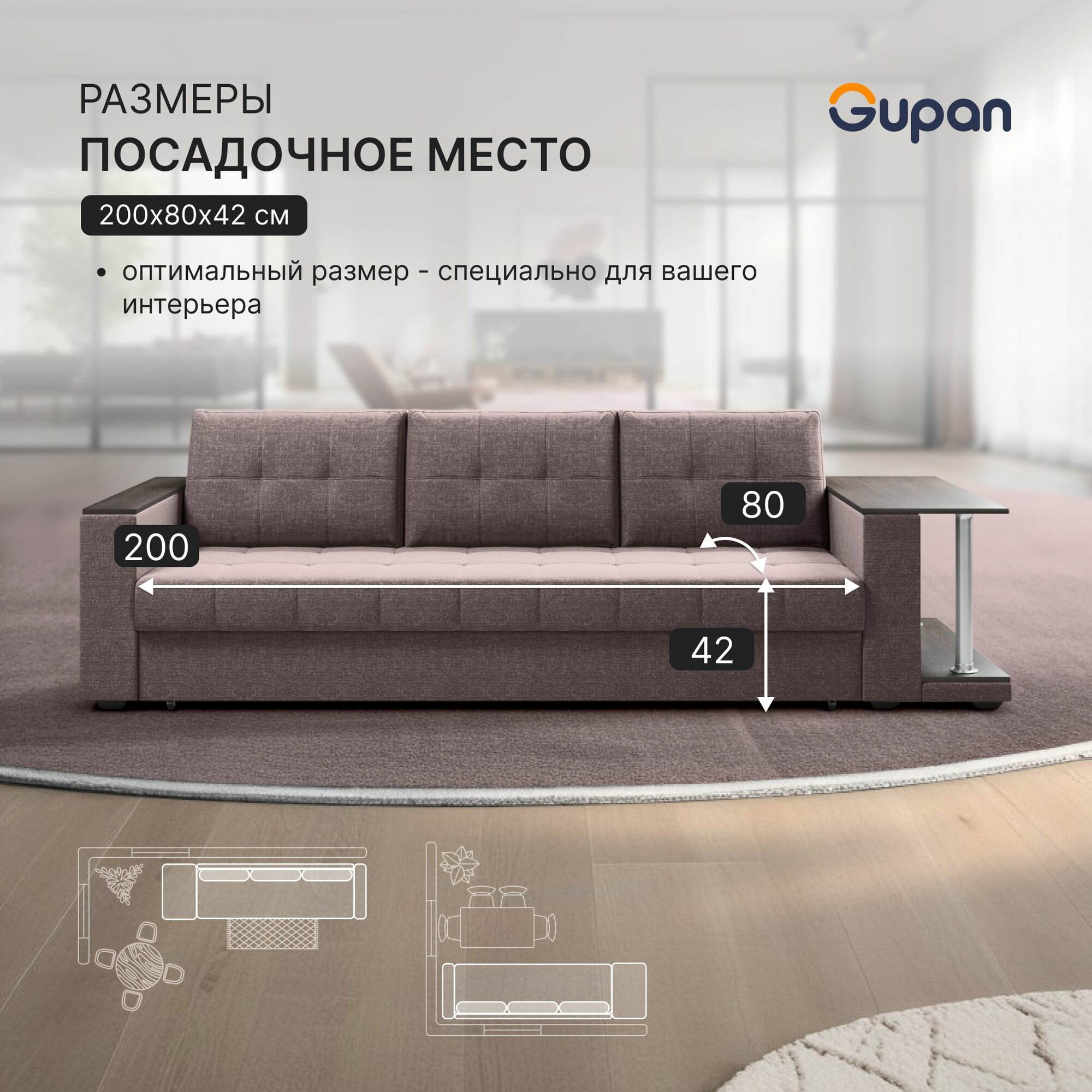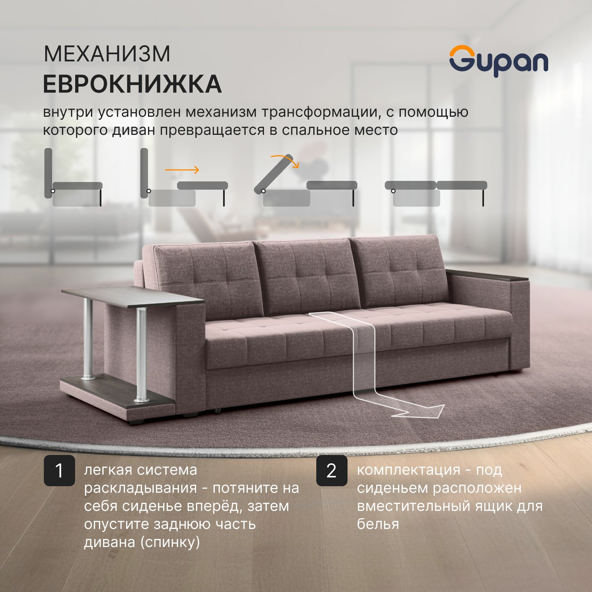 Диван кровать Gupan Атланта Классик Люкс со столом Рогожка Savana Dimrose, раскладной, механизм еврокнижка, беспружинный, с ящиком для белья