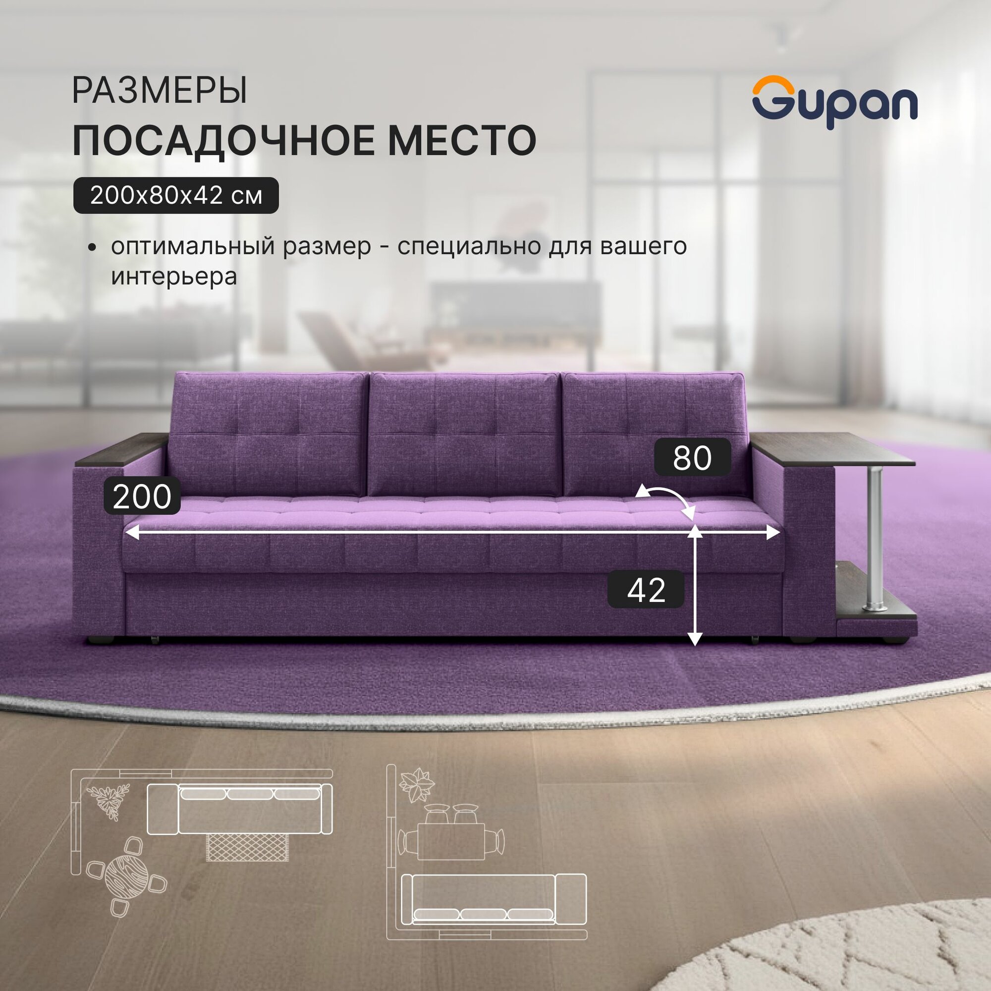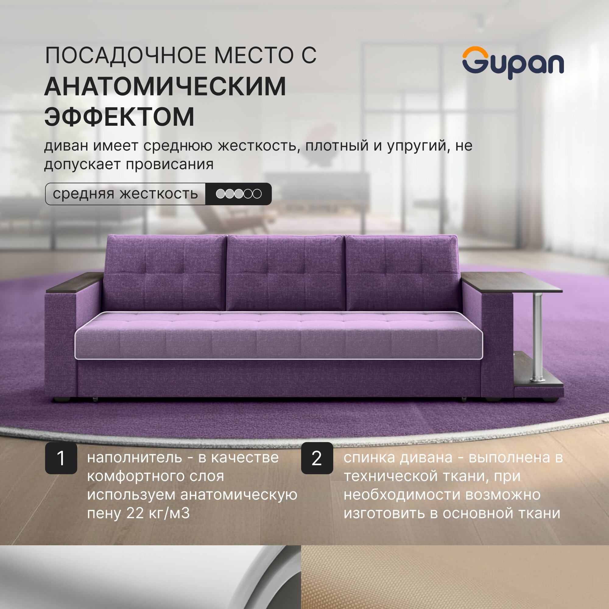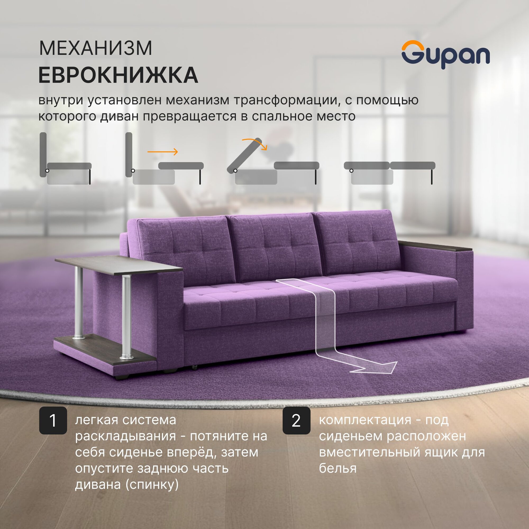 Купить Диван кровать Gupan Атланта Классик Люкс со столом Рогожка Savana Violet, раскладной, механизм еврокнижка, беспружинный, с ящиком для белья