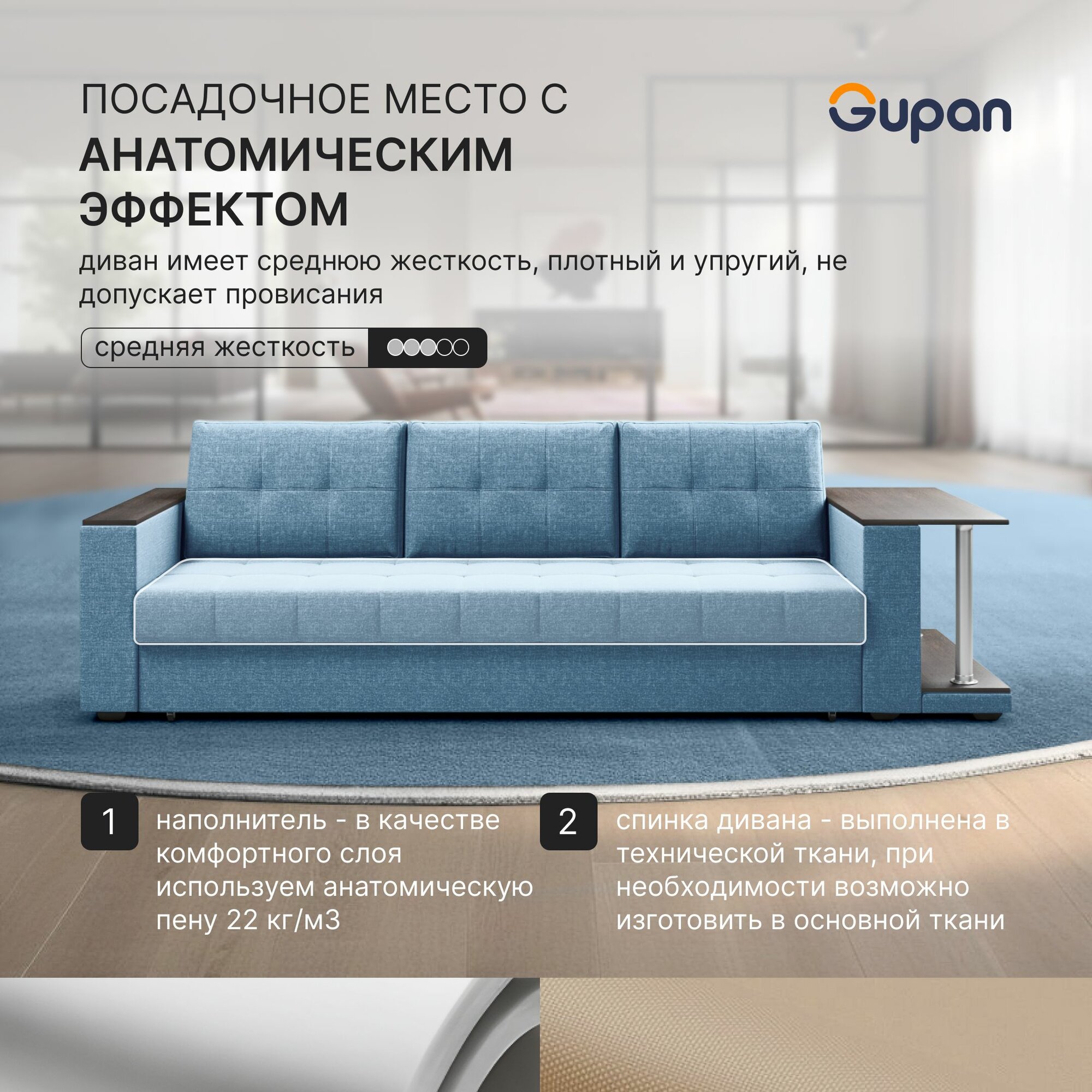 Диван кровать Gupan Атланта Классик Люкс со столом Рогожка Savana Lagoon, раскладной, механизм еврокнижка, беспружинный, с ящиком для белья