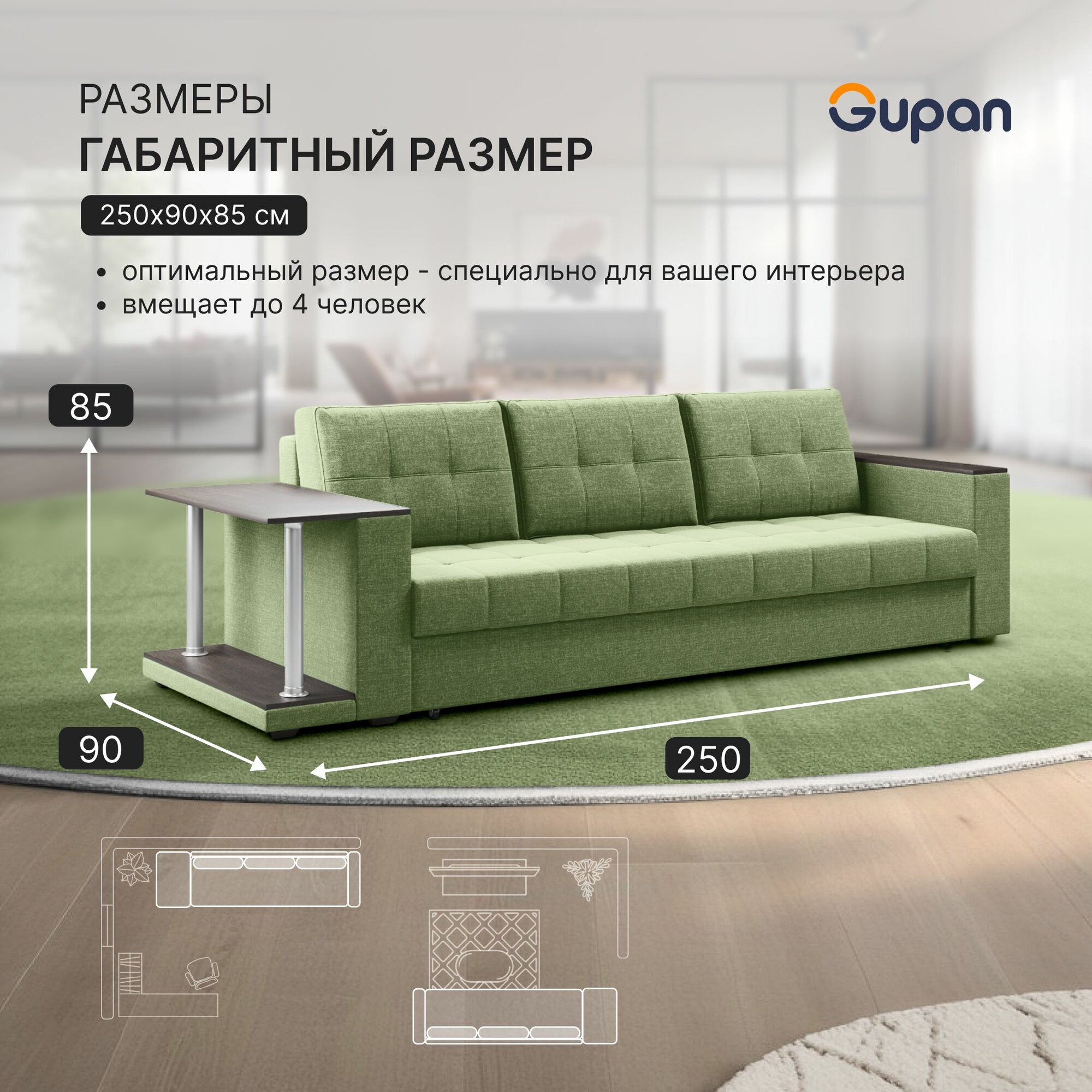 Купить Диван кровать Gupan Атланта Классик Люкс со столом Рогожка Savana Green, раскладной, механизм еврокнижка, беспружинный, с ящиком для белья