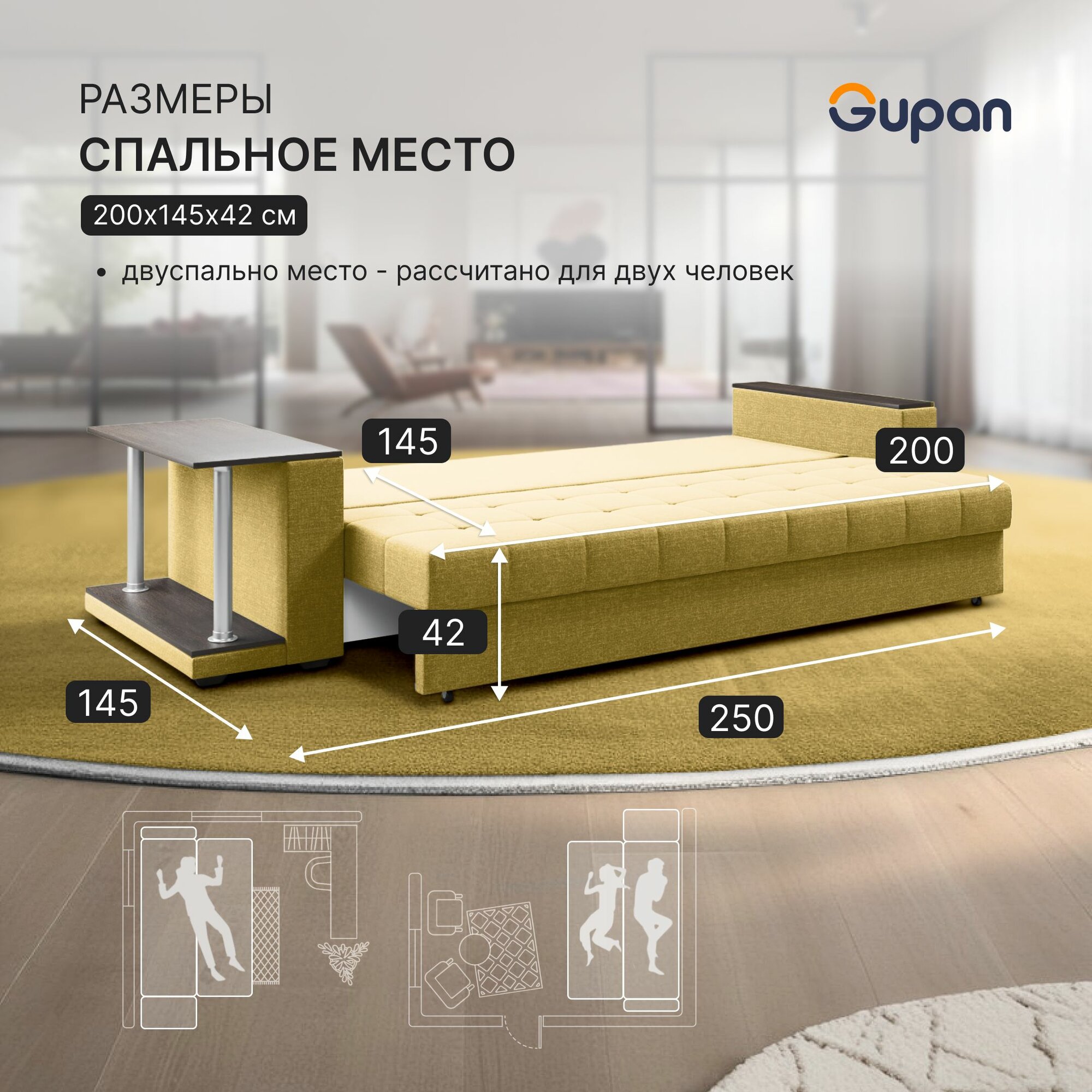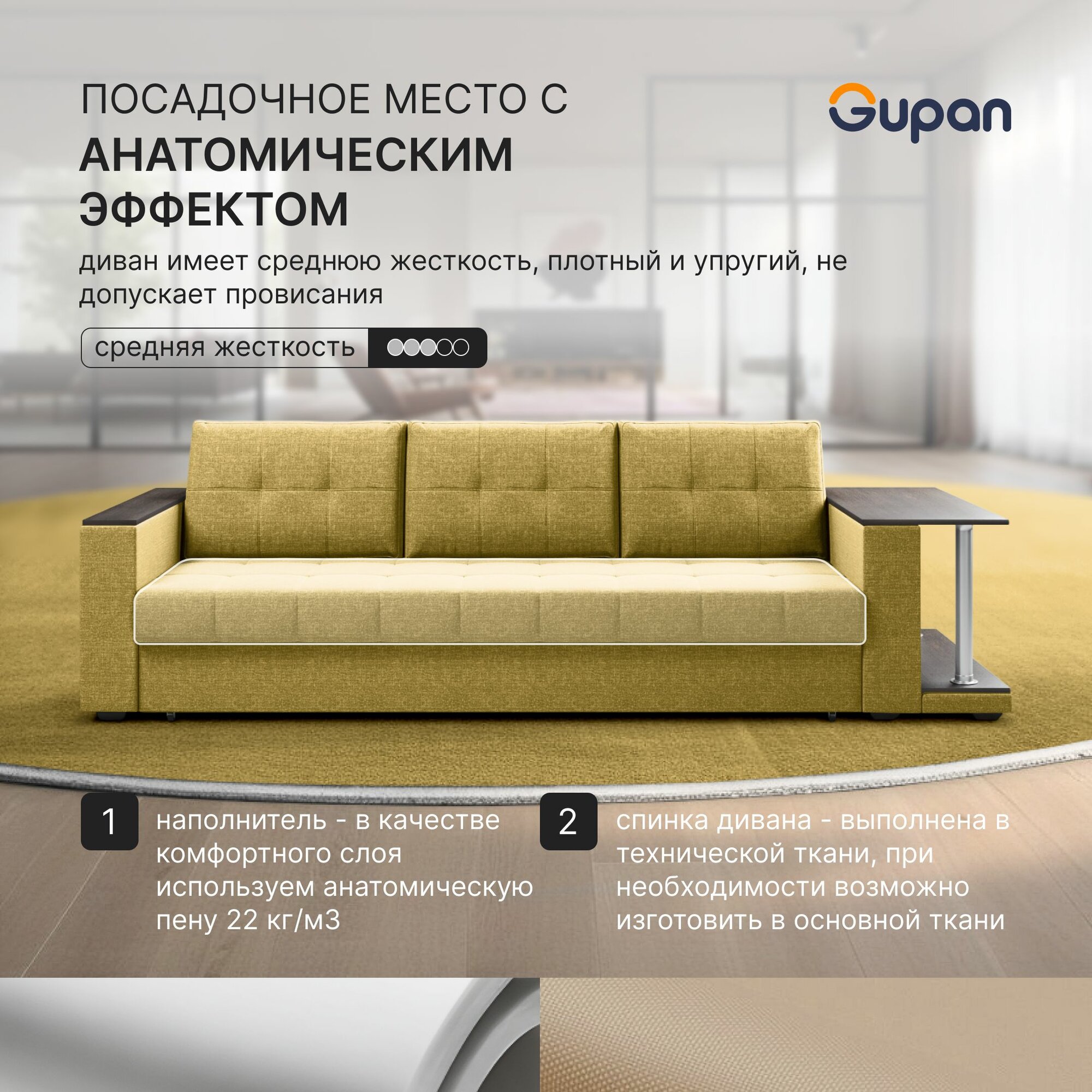 СохранитьДиван кровать Gupan Атланта Классик Люкс со столом Рогожка Savana Yellow, раскладной, механизм еврокнижка, беспружинный, с ящиком для белья интересное: