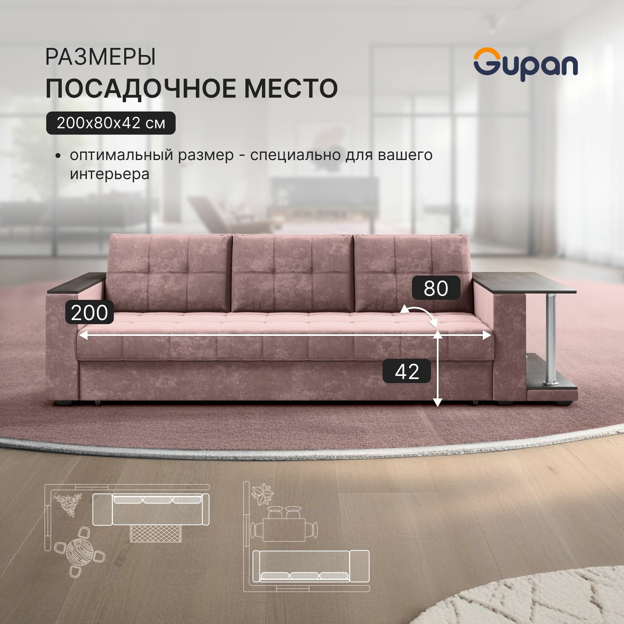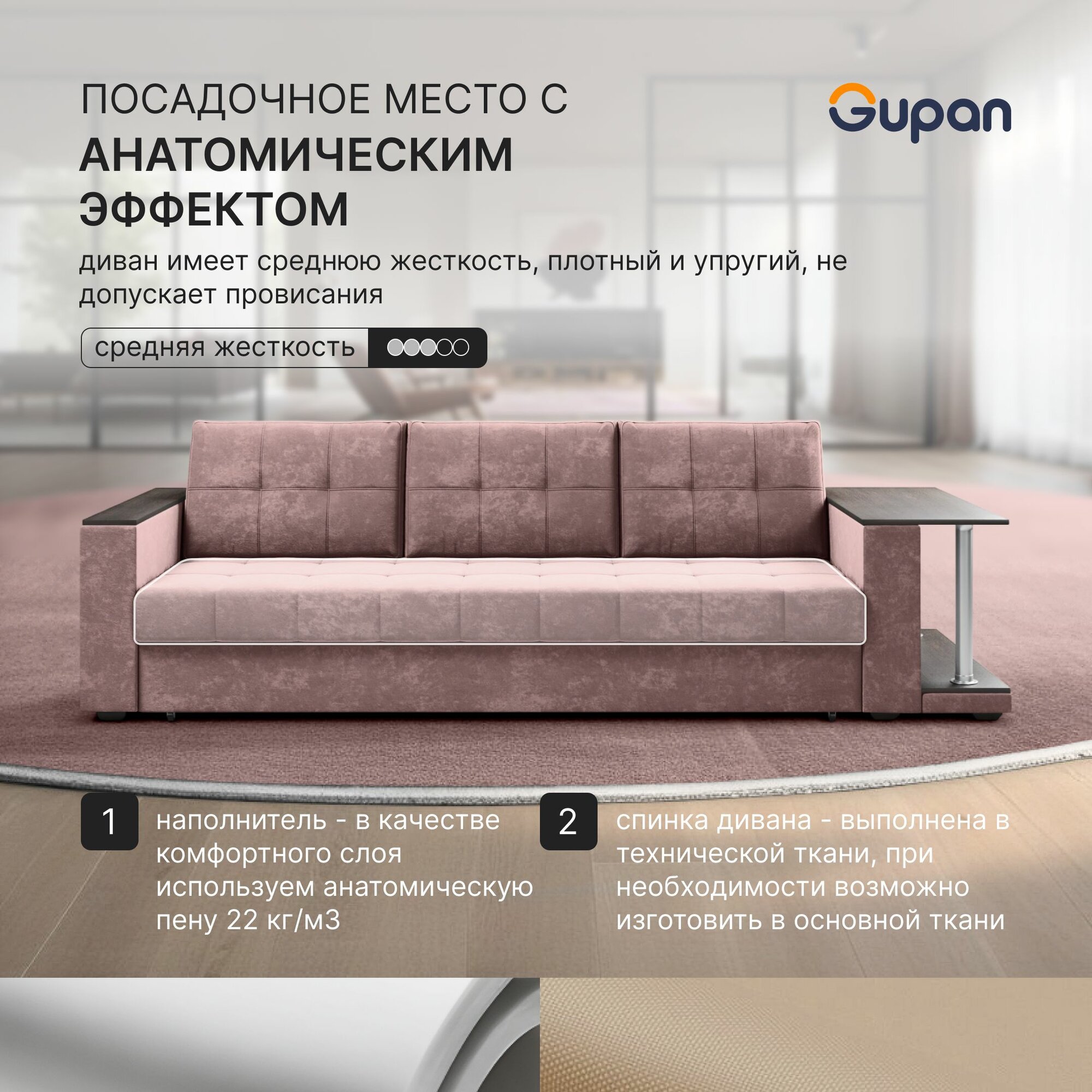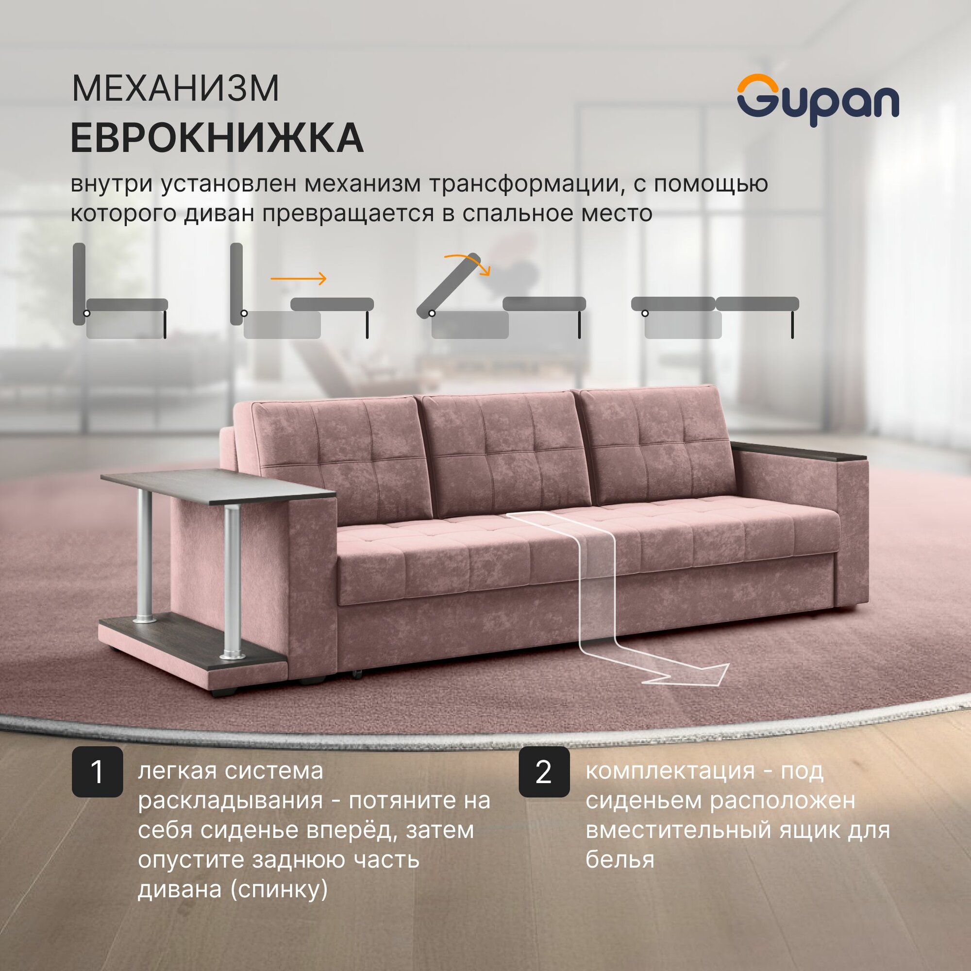 Диван кровать Gupan Атланта Классик Люкс со столом Рогожка Savana Dimrose, раскладной, механизм еврокнижка, беспружинный, с ящиком для белья