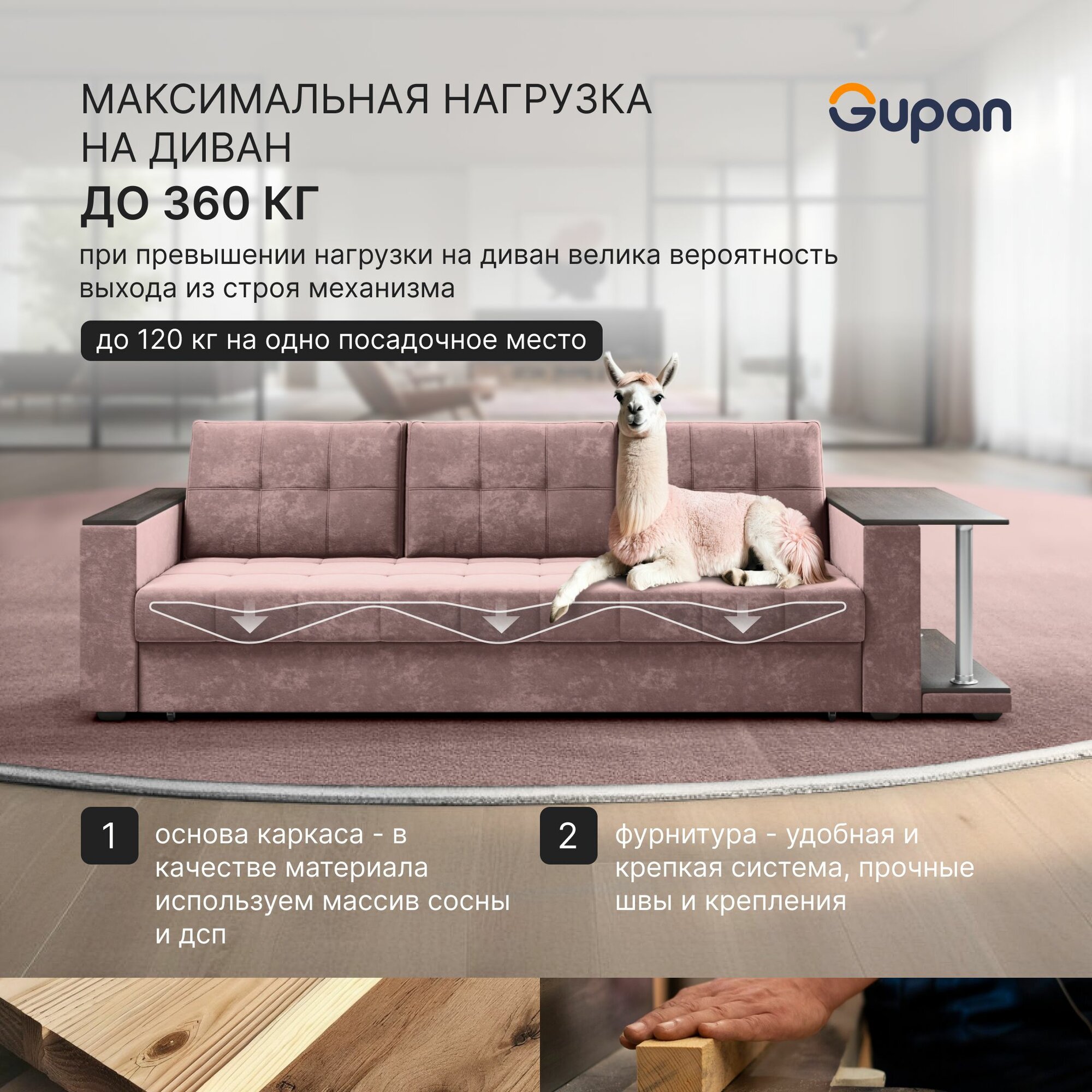 Диван кровать Gupan Атланта Классик Люкс со столом, материал Велюр Bingo Mauve, раскладной, механизм еврокнижка, беспружинный, с ящиком для белья