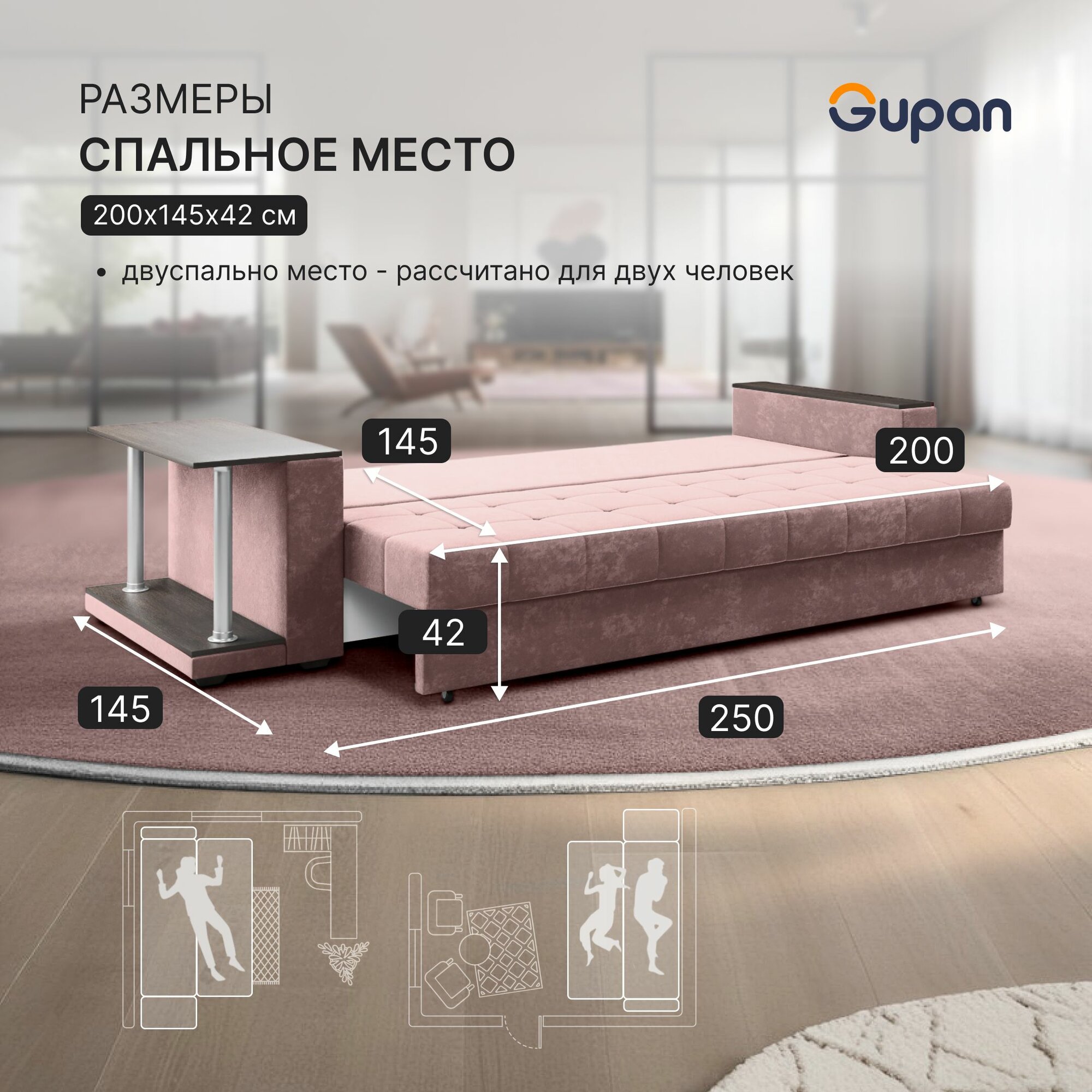 Диван кровать Gupan Атланта Классик Люкс со столом, Велюр Bingo Desert, раскладной, механизм еврокнижка, беспружинный, с ящиком для белья