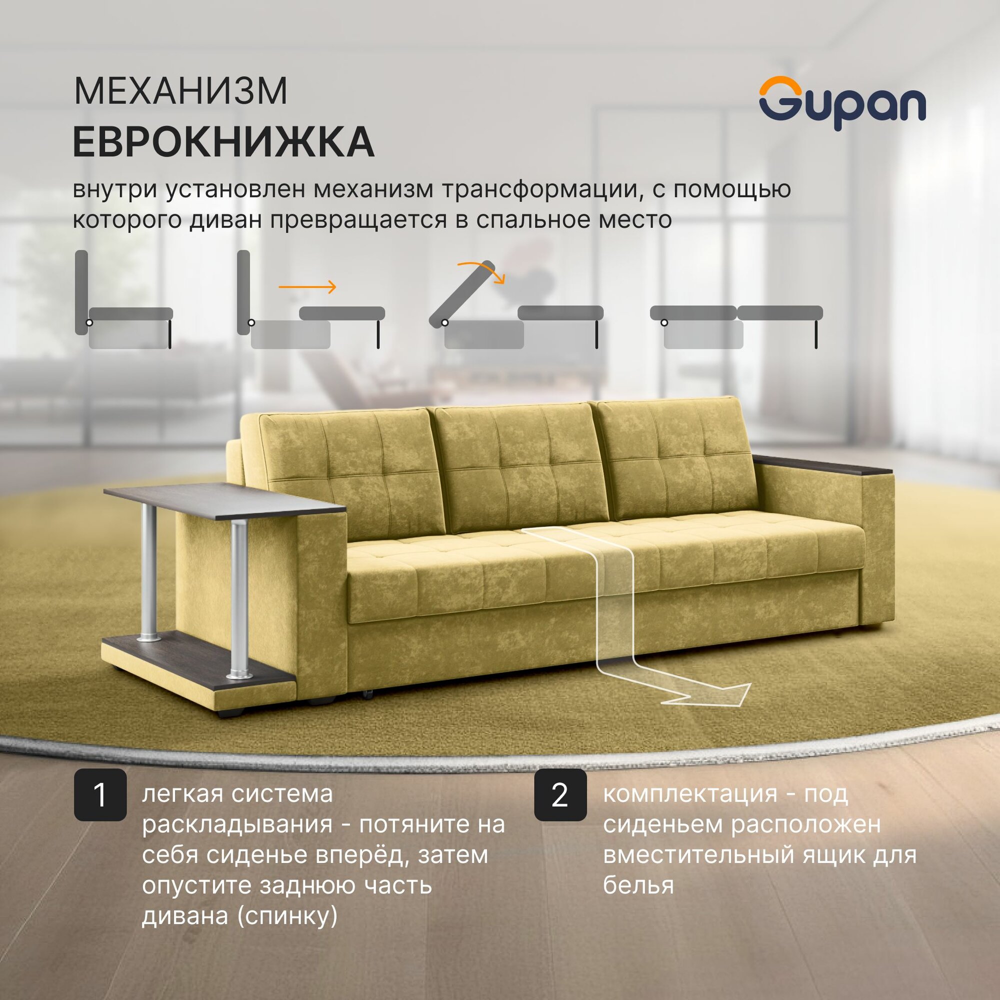Купить Диван кровать Gupan Атланта Классик Люкс со столом, Велюр Bingo Yellow, раскладной, механизм еврокнижка, беспружинный, с ящиком для белья