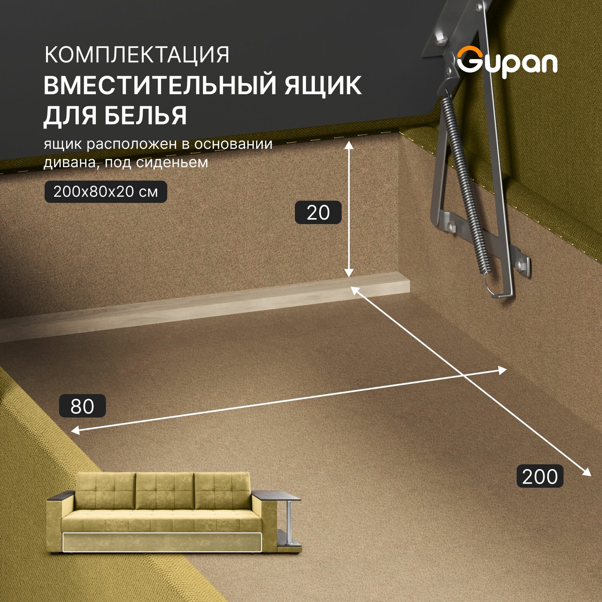 Диван кровать Gupan Атланта Классик Люкс со столом, Велюр Bingo Mustard, раскладной, механизм еврокнижка, беспружинный, с ящиком для белья