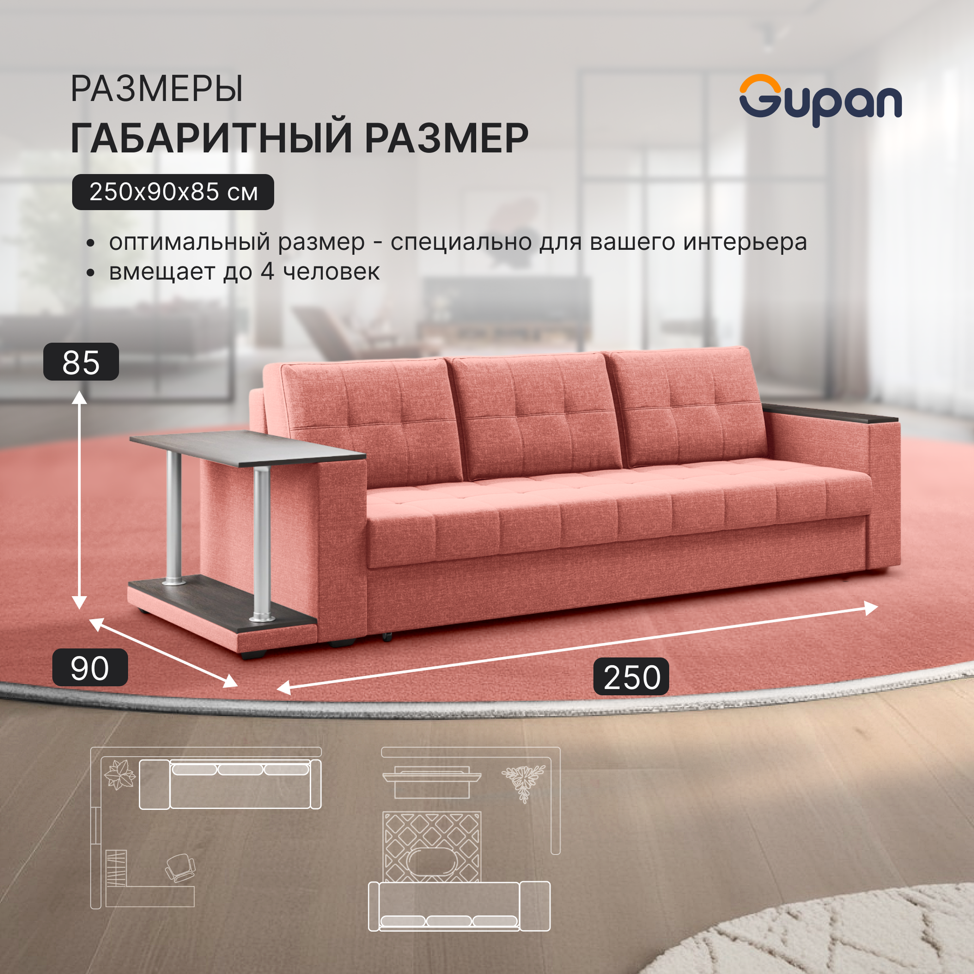 СохранитьДиван кровать Gupan Атланта Классик Люкс со столом Рогожка Savana Coral, раскладной, механизм еврокнижка, беспружинный, с ящиком для белья интересное: