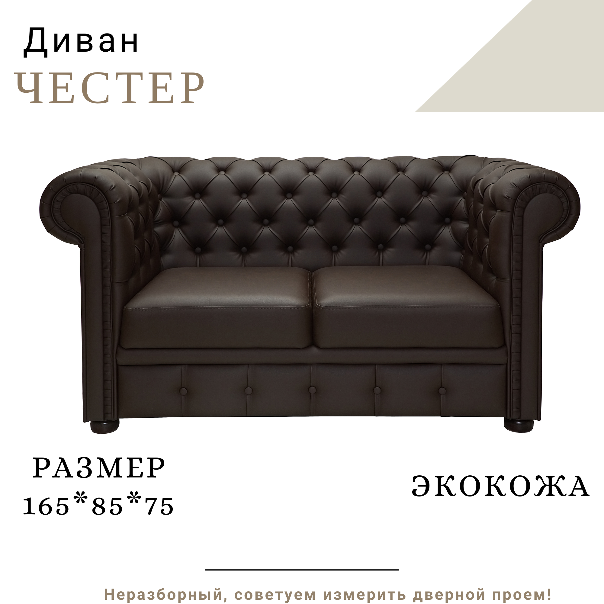 Прямой диван Честер, 2-х местный, нераскладной, экокожа PG BROWN интересное: