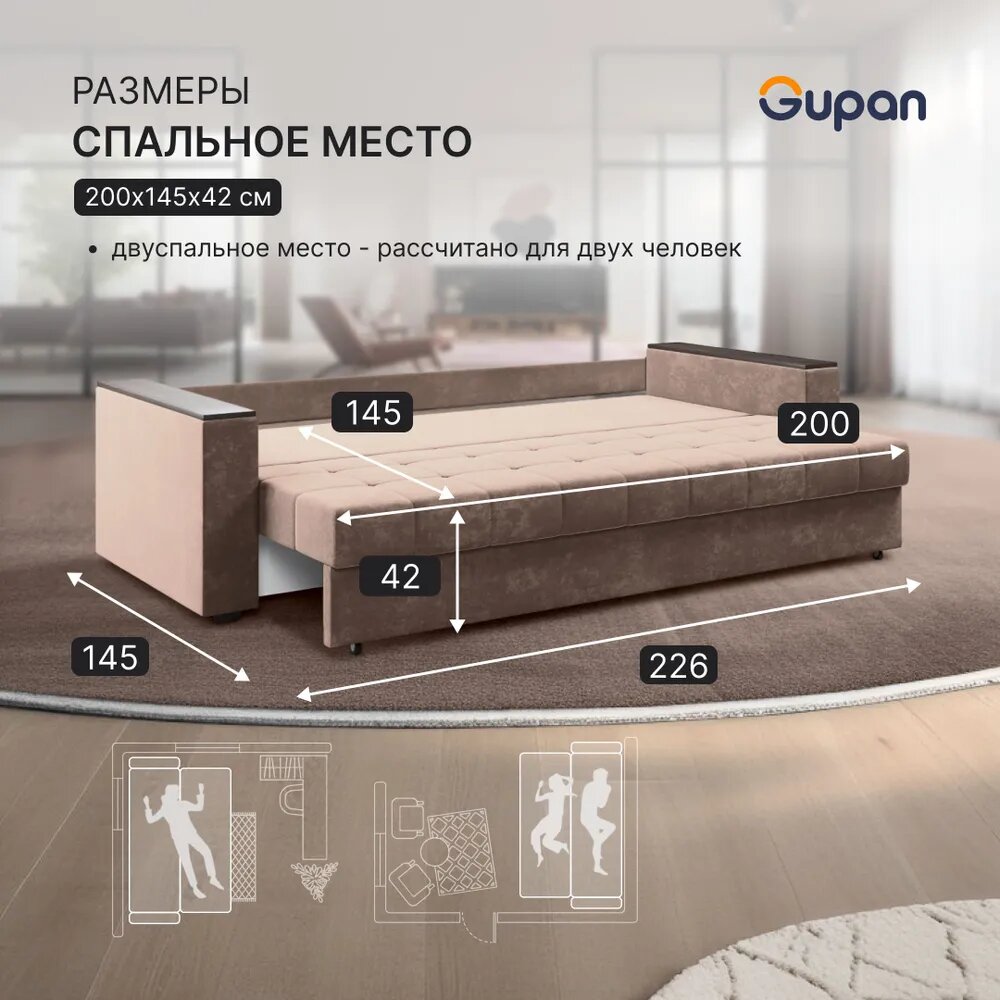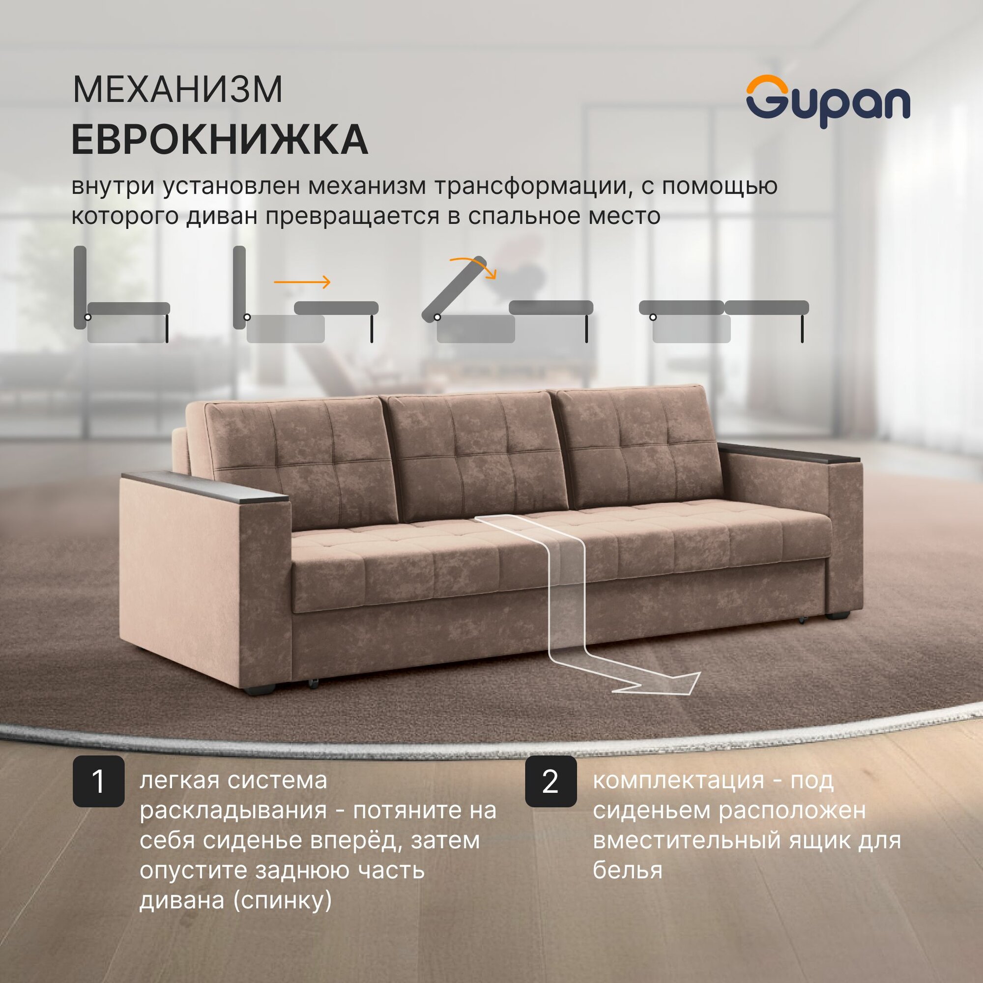 Диван кровать Gupan Атланта Классик Люкс Велюр Bingo Desert, раскладной, механизм еврокнижка, беспружинный, с ящиком для белья
