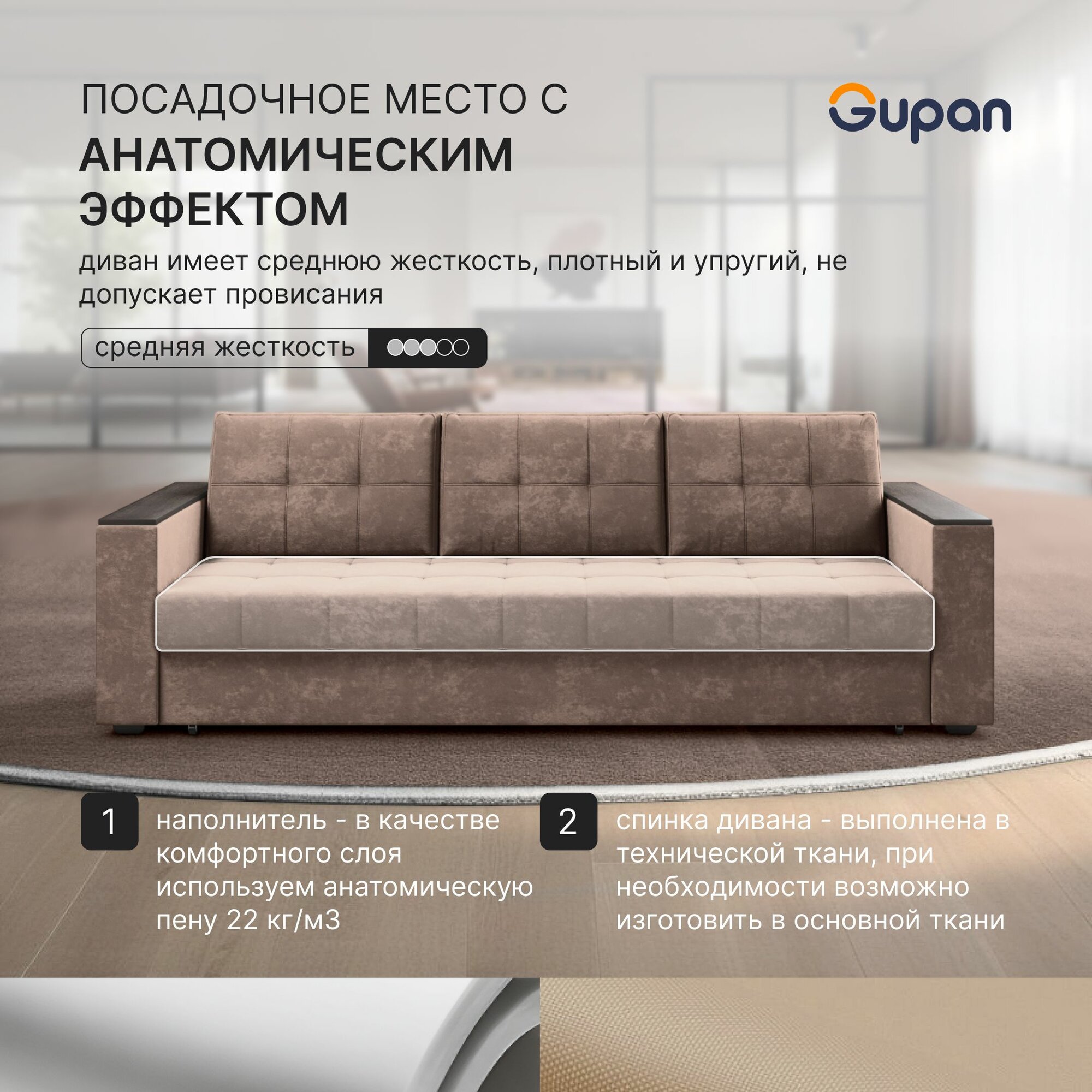 Диван кровать Gupan Атланта Классик Люкс Рогожка Savana Java, раскладной, механизм еврокнижка, беспружинный, с ящиком для белья