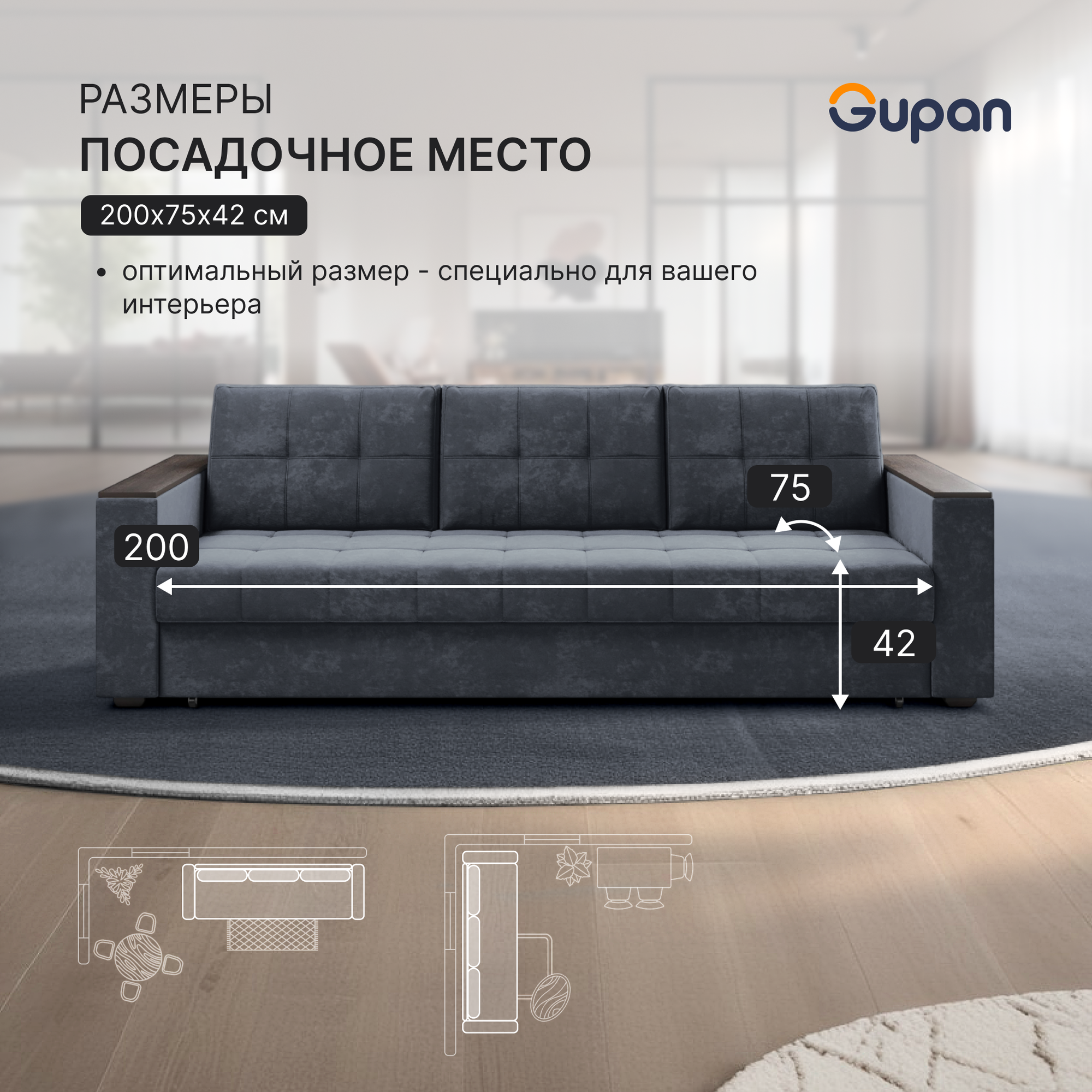 Диван кровать Gupan Атланта Классик Люкс, Рогожка Savana Mouse, раскладной, механизм еврокнижка, беспружинный, с ящиком для белья