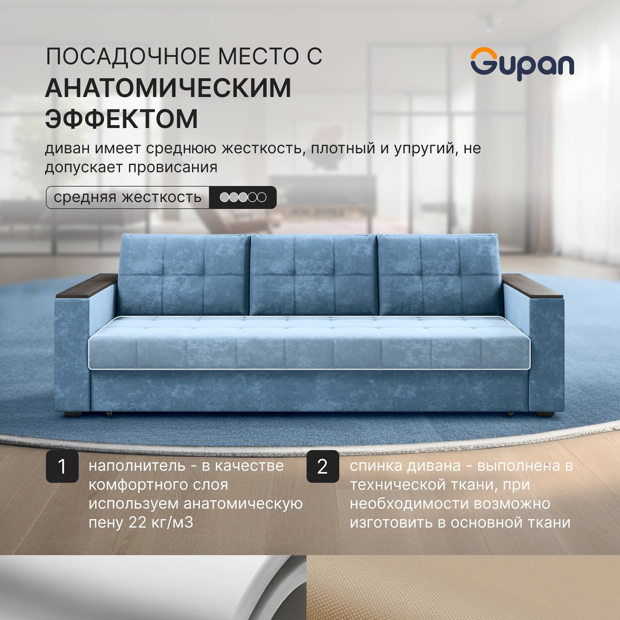 Диван кровать Gupan Алекс Рогожка Savana Lagoon, раскладной, механизм выкатной, беспружинный, с ящиком для белья