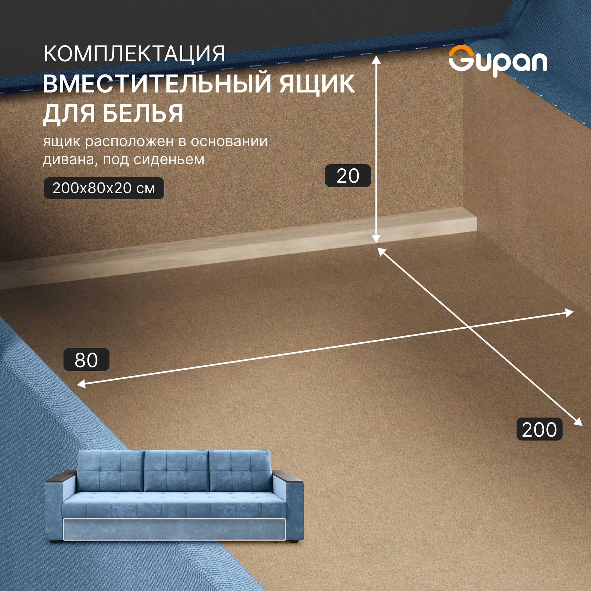 Диван кровать Gupan Атланта Классик Люкс Велюр Bingo Denim, раскладной, механизм еврокнижка, беспружинный, с ящиком для белья
