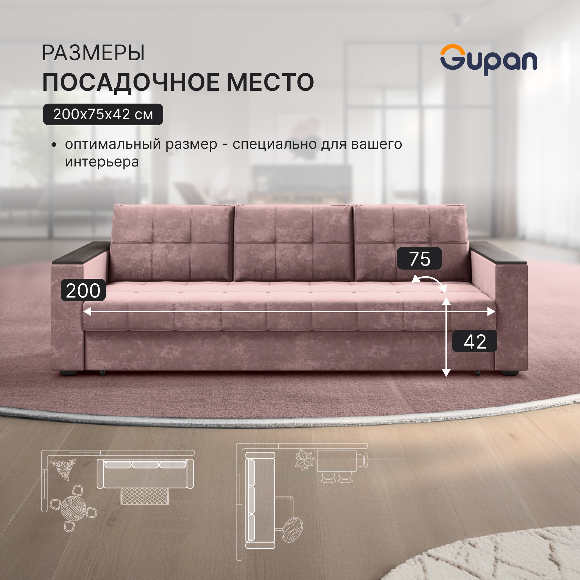 Диван кровать Gupan Алекс Велюр Amigo Berry, раскладной, механизм выкатной, беспружинный, с ящиком для белья