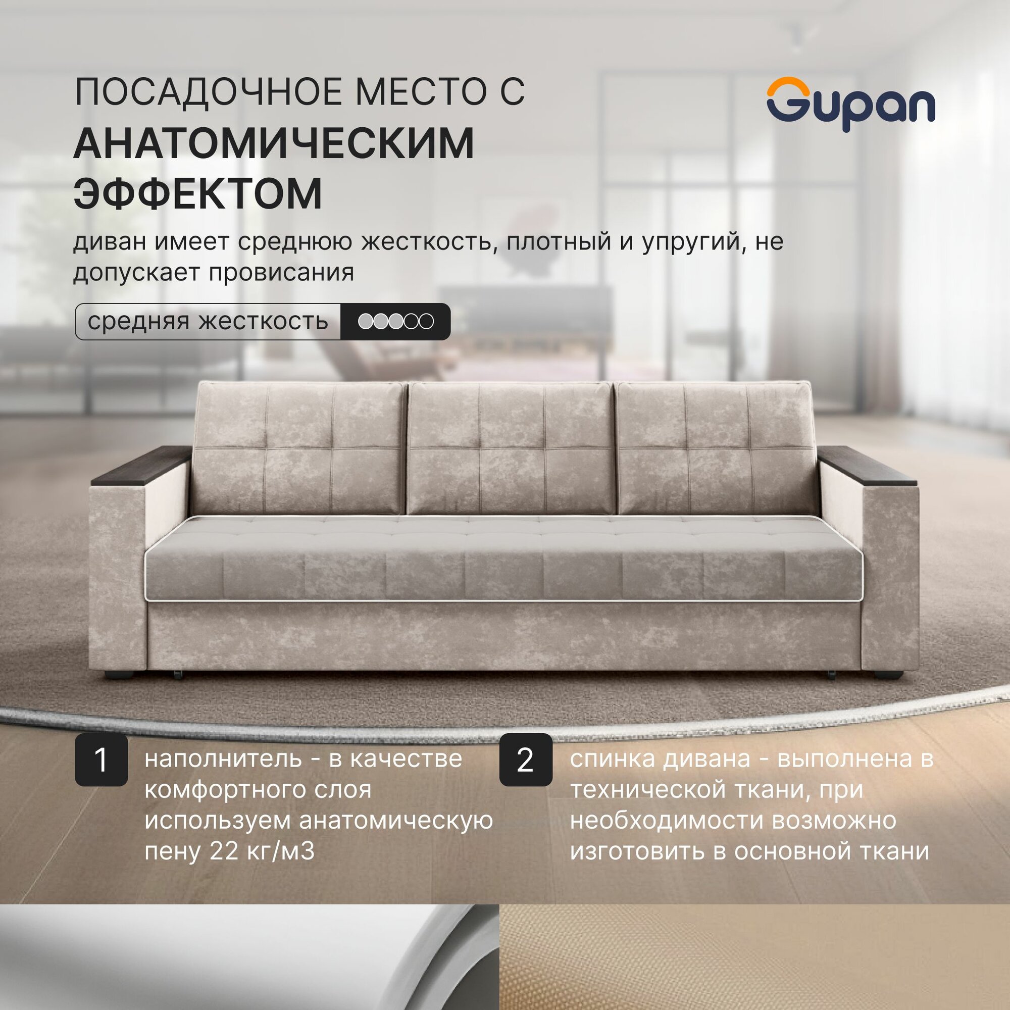 Диван кровать Gupan Алекс Рогожка Бежевая, раскладной, механизм выкатной, беспружинный, с ящиком для белья