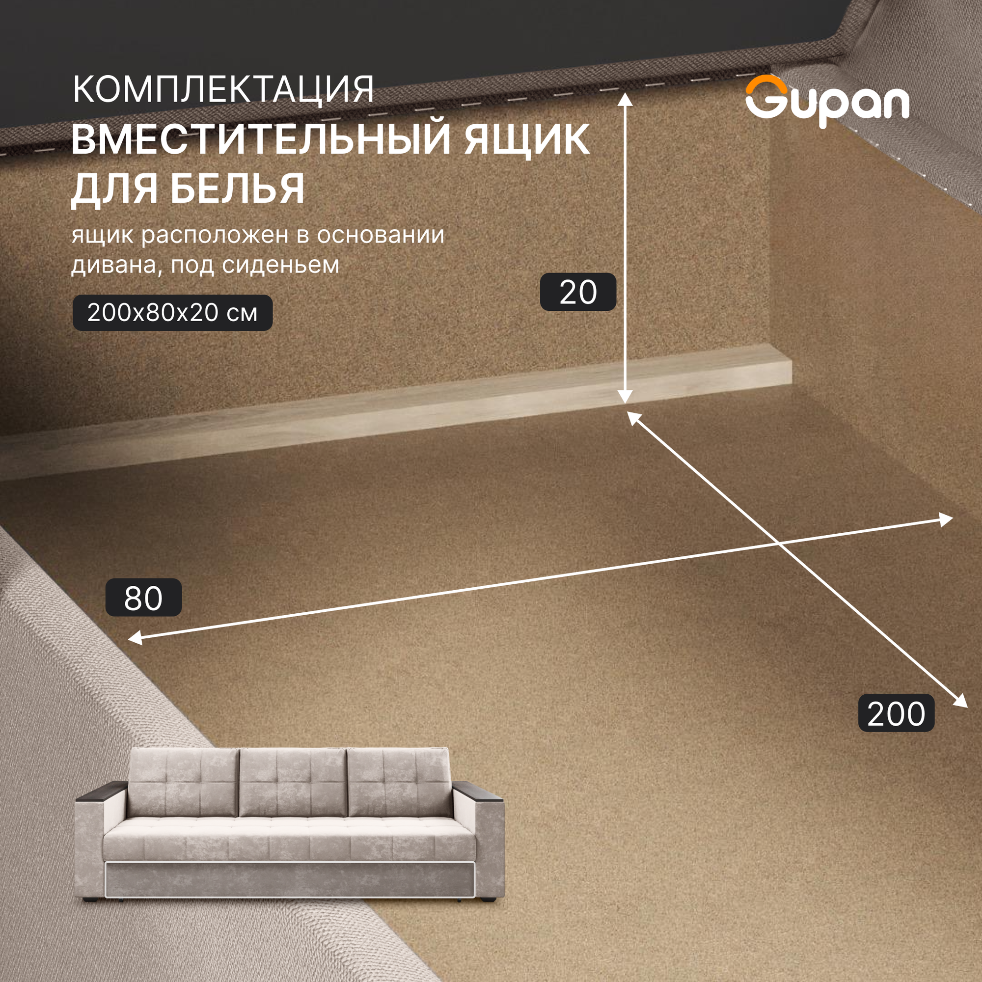 Диван кровать Gupan Атланта Классик Люкс Рогожка Savana Beige, раскладной, механизм еврокнижка, беспружинный, с ящиком для белья