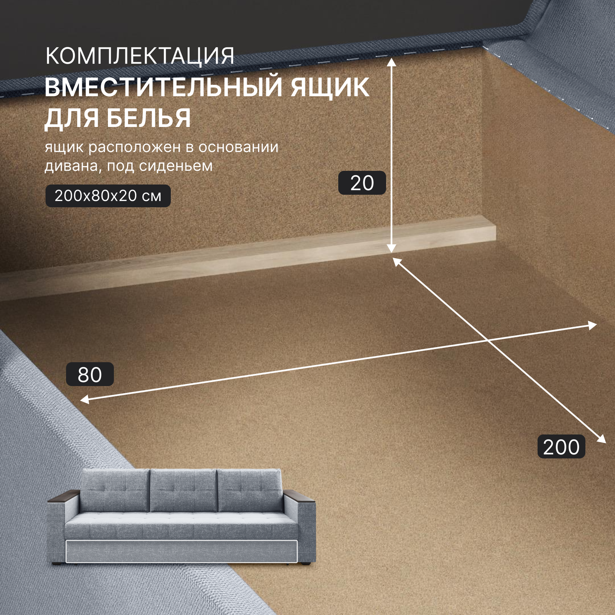 Диван кровать Gupan Атланта Классик Люкс Рогожка Savana Ash, раскладной, механизм еврокнижка, беспружинный, с ящиком для белья