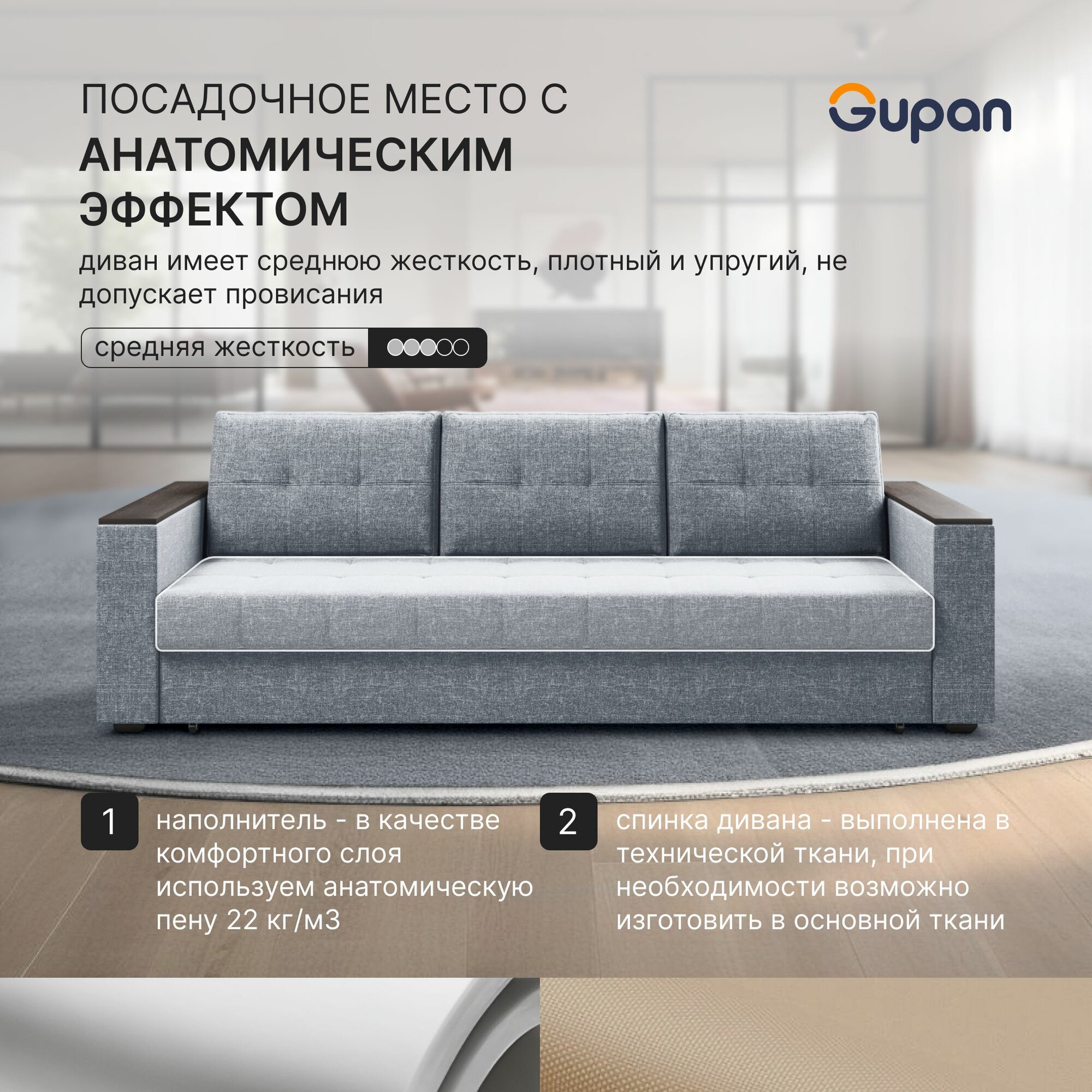 Диван кровать Gupan Атланта Классик Люкс Рогожка Savana Grey, раскладной, механизм еврокнижка, беспружинный, с ящиком для белья