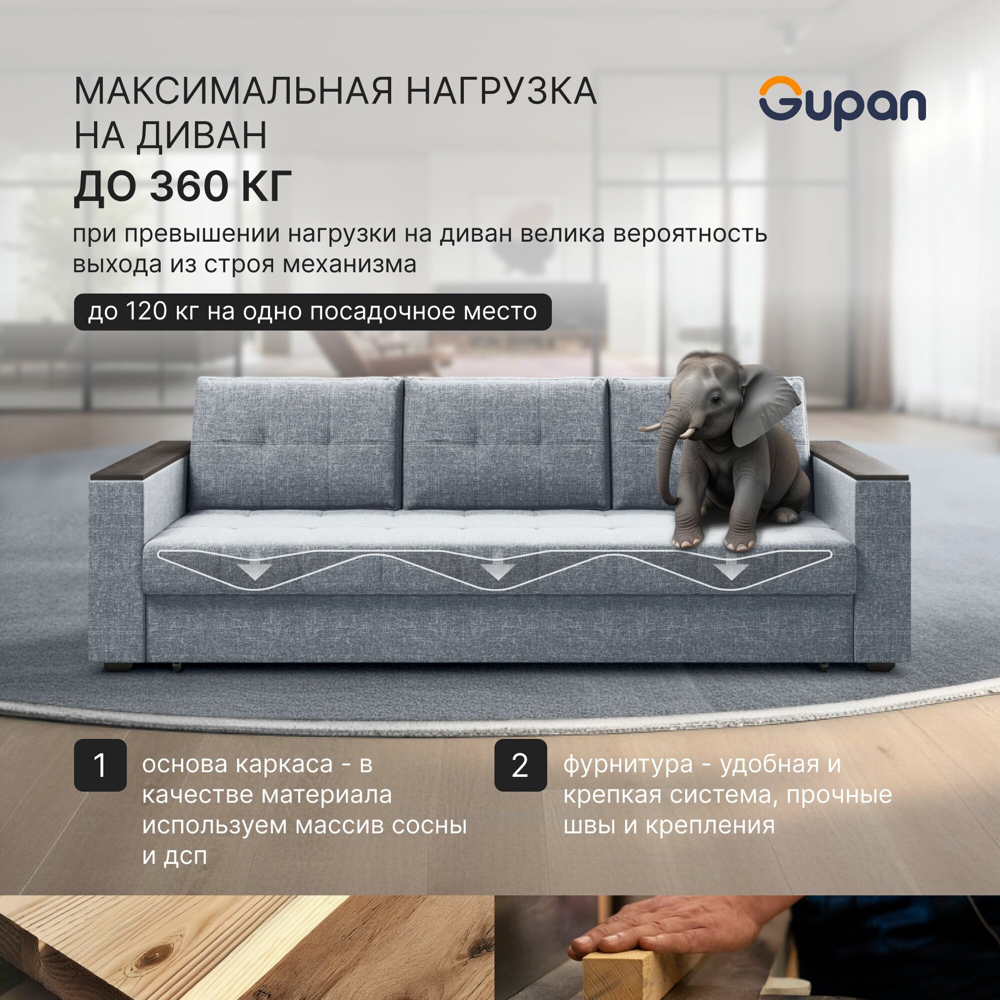 Диван кровать Gupan Алекс Рогожка Savana Mouse, раскладной, механизм выкатной, беспружинный, с ящиком для белья