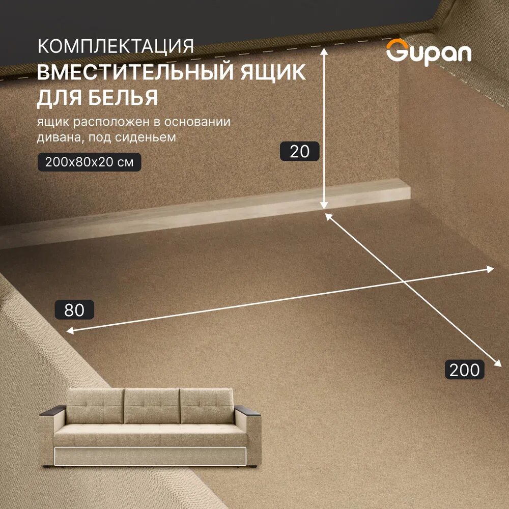Диван кровать Gupan Атланта Классик Люкс Рогожка Beige, раскладной, механизм еврокнижка, беспружинный, с ящиком для белья