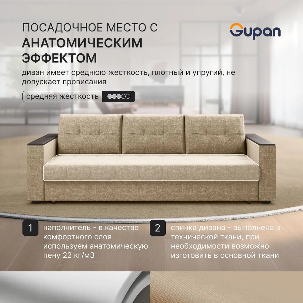 Диван кровать Gupan Алекс Рогожка Бежевая, раскладной, механизм выкатной, беспружинный, с ящиком для белья