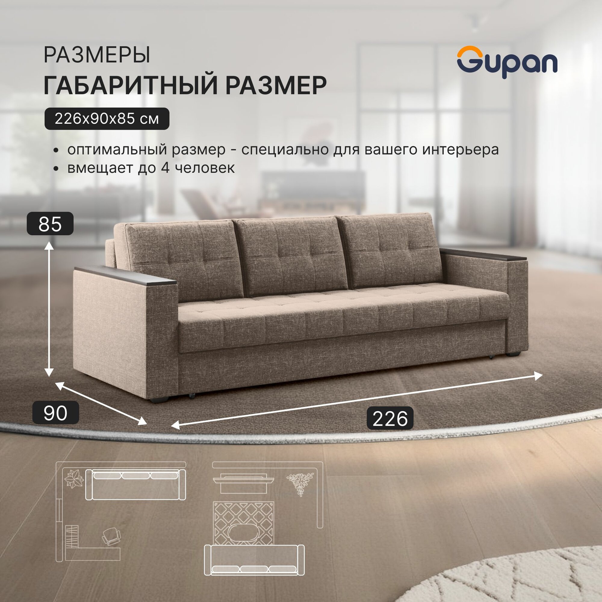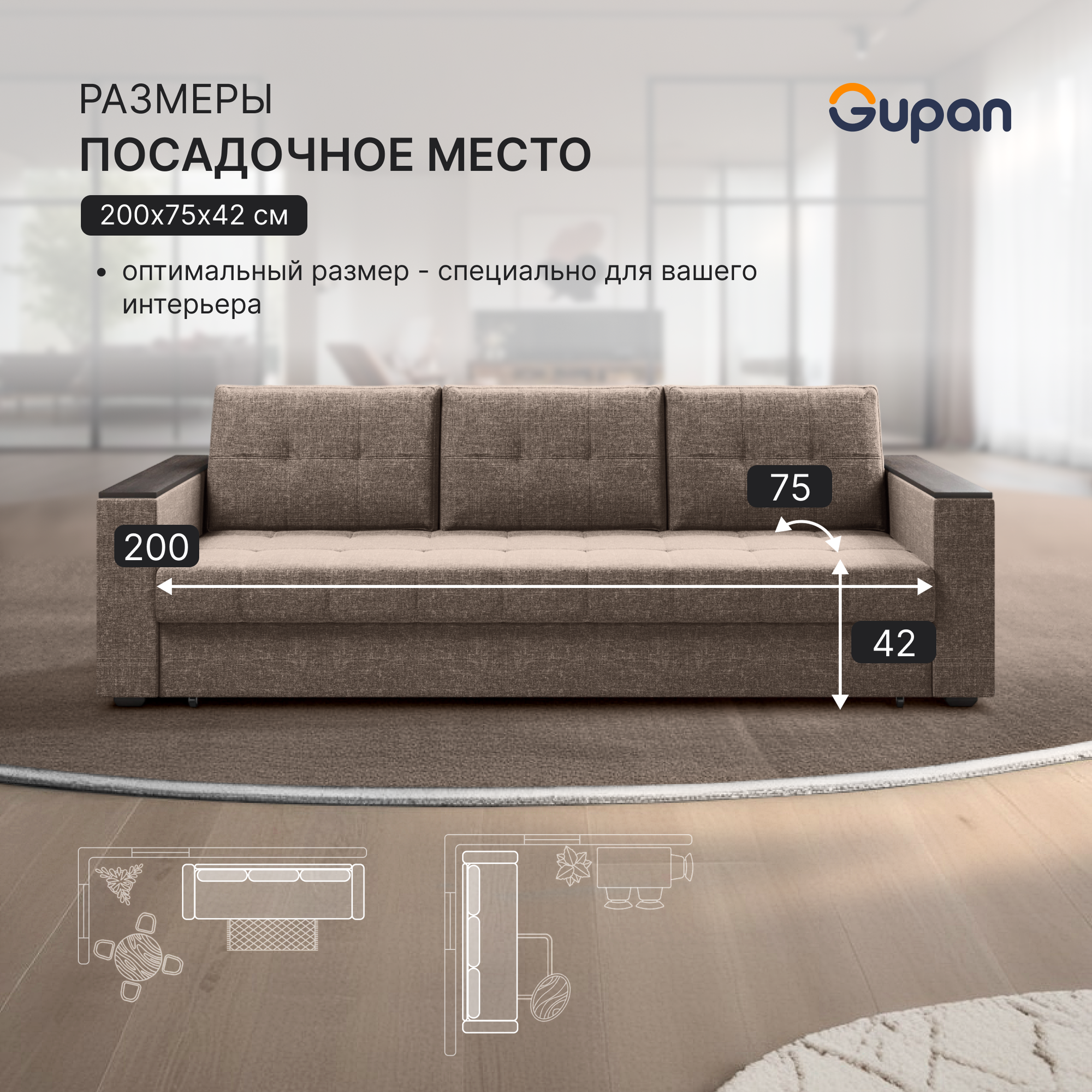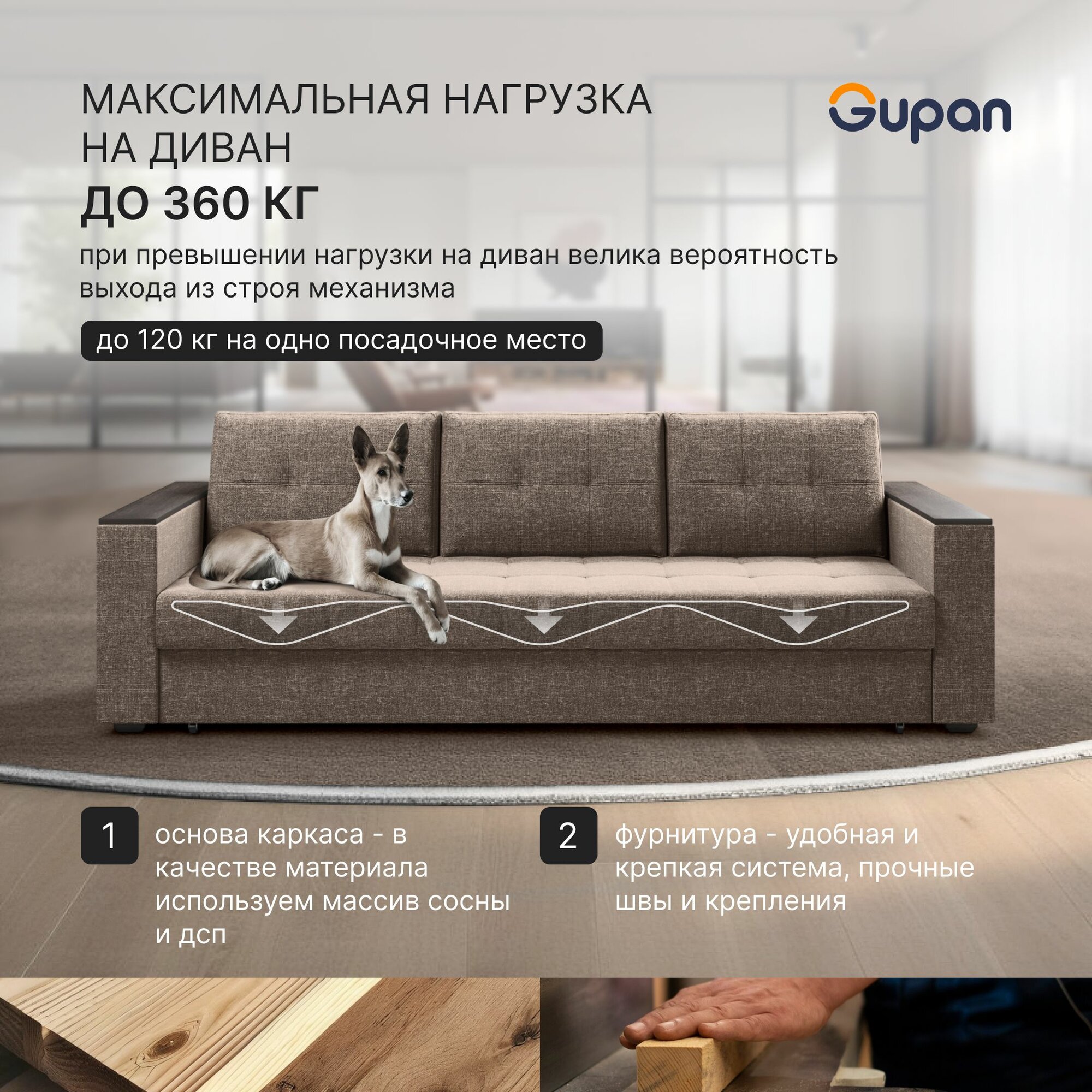 Диван кровать Gupan Атланта Классик Люкс Рогожка Savana Java, раскладной, механизм еврокнижка, беспружинный, с ящиком для белья