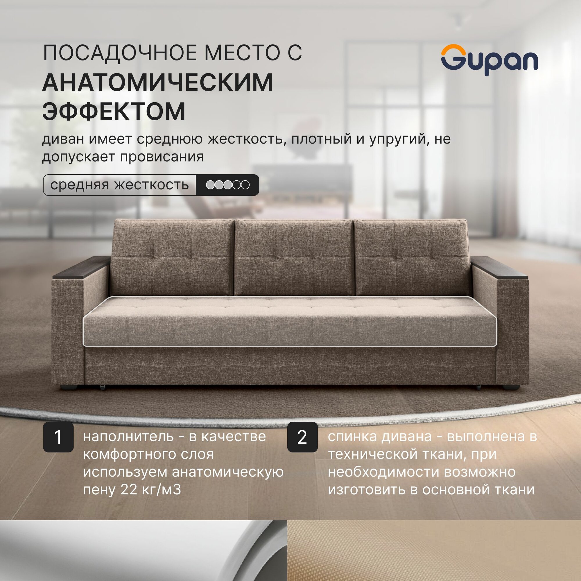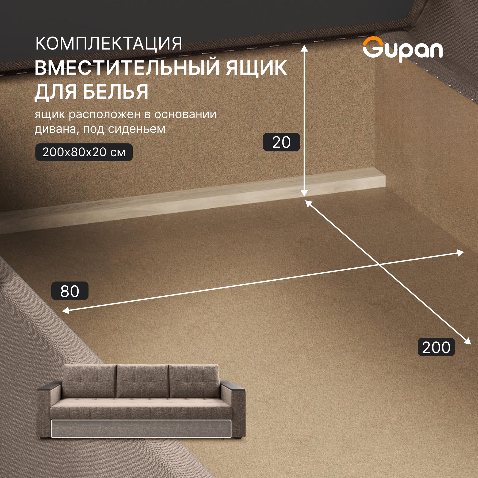 Купить Диван кровать Gupan Атланта Классик Люкс Рогожка Savana Hazel, раскладной, механизм еврокнижка, беспружинный, с ящиком для белья