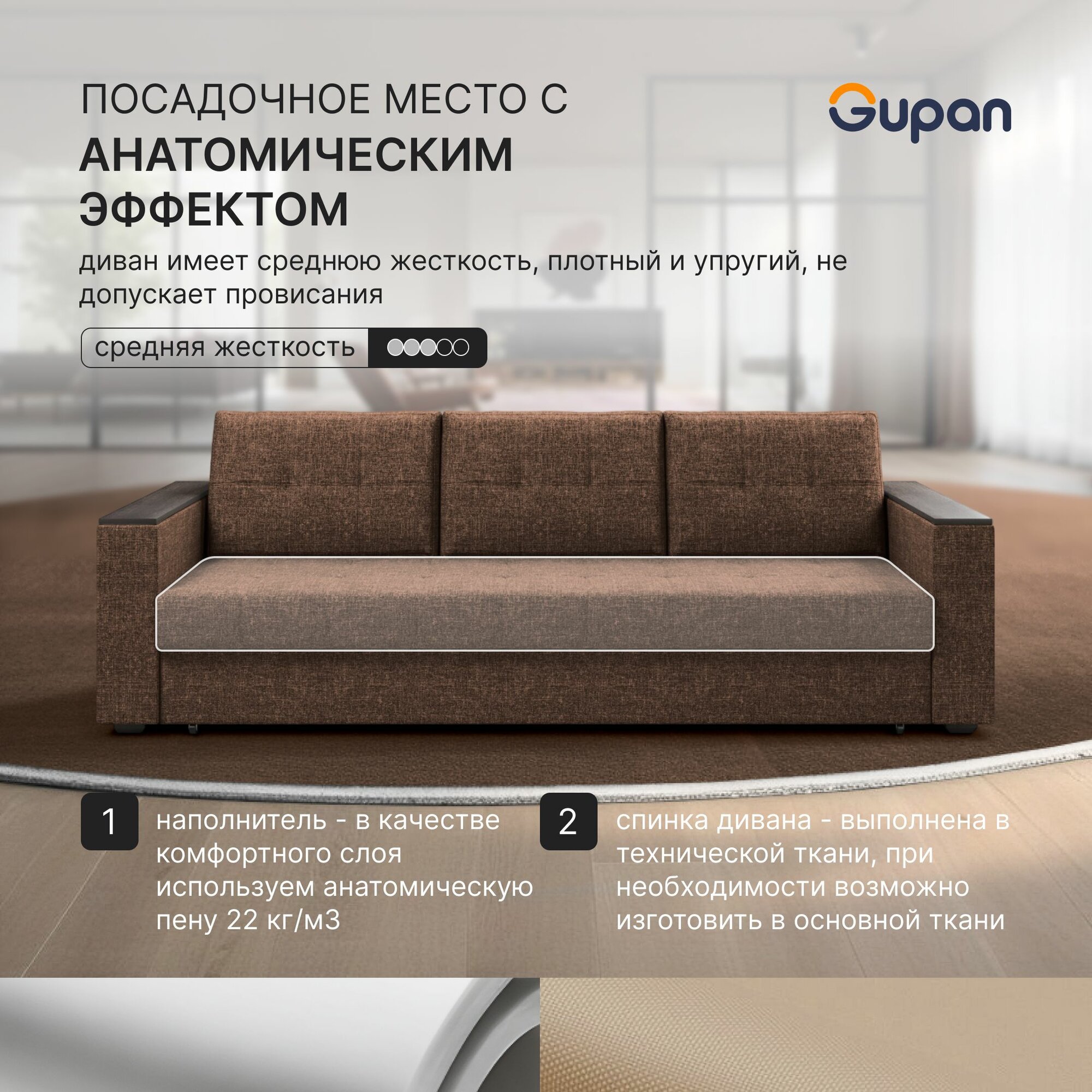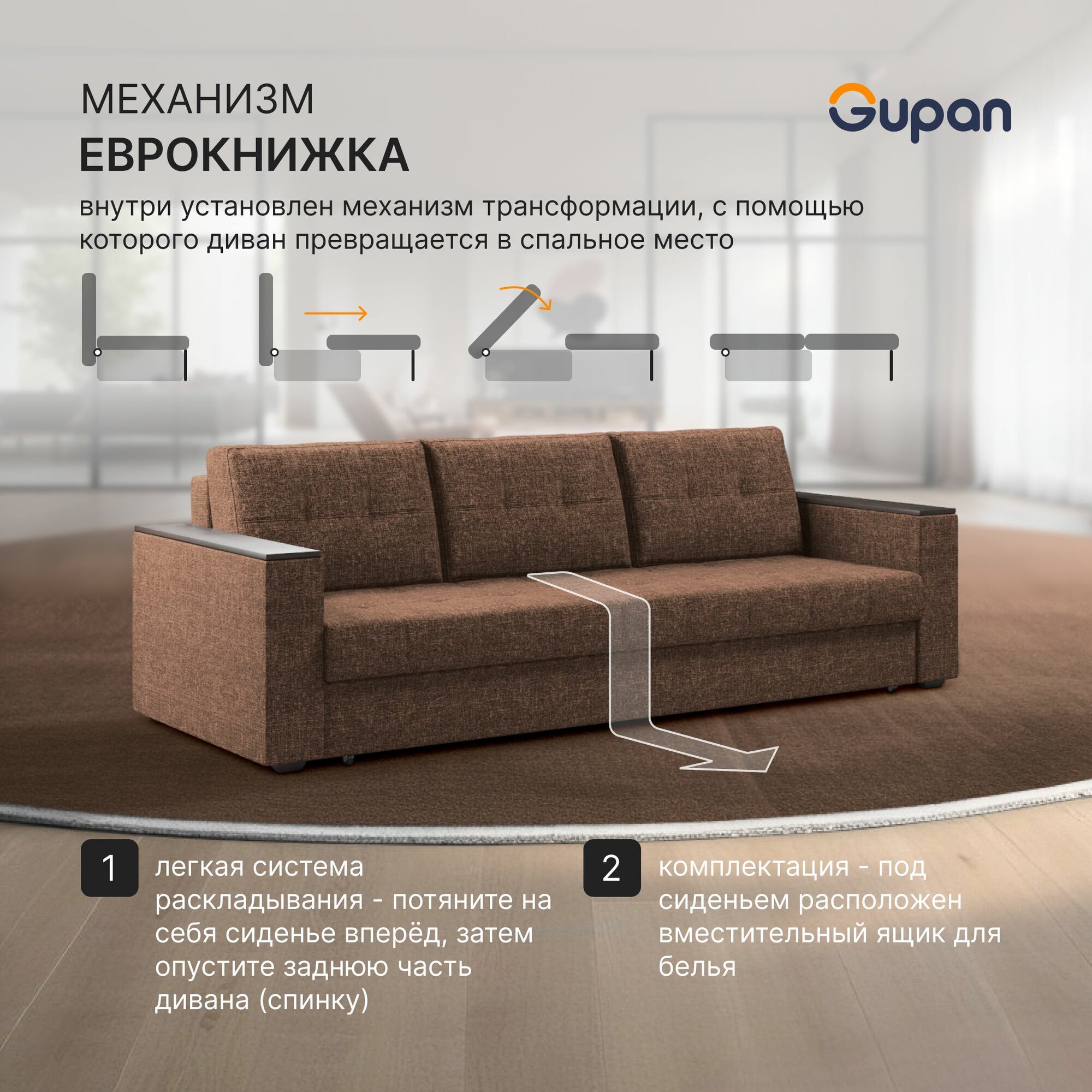 СохранитьДиван кровать Gupan Атланта Классик Люкс, Рогожка Savana Chocolate, раскладной, механизм еврокнижка, беспружинный, с ящиком для белья интересное: