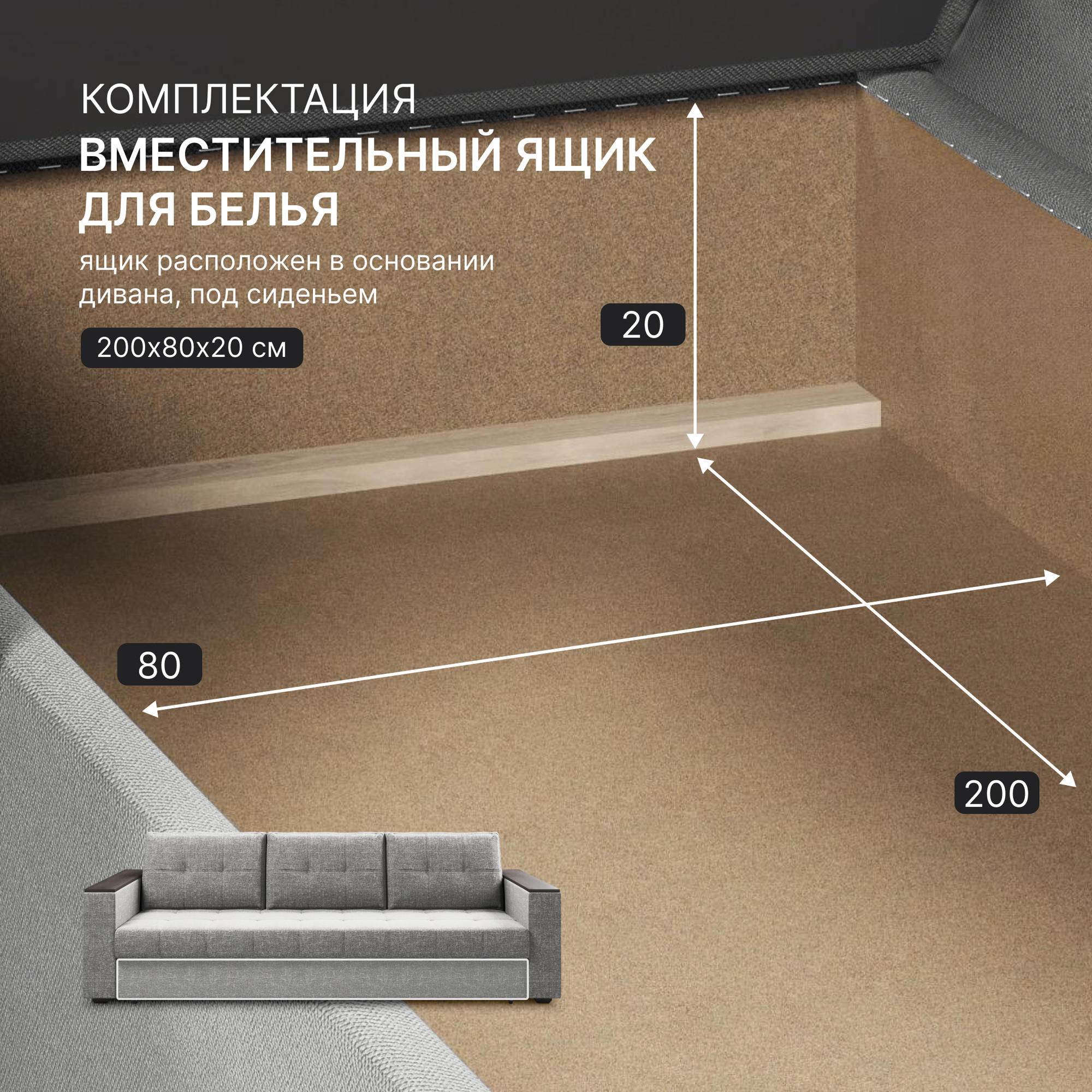 Диван кровать Gupan Атланта Классик Люкс Рогожка Savana Grey, раскладной, механизм еврокнижка, беспружинный, с ящиком для белья