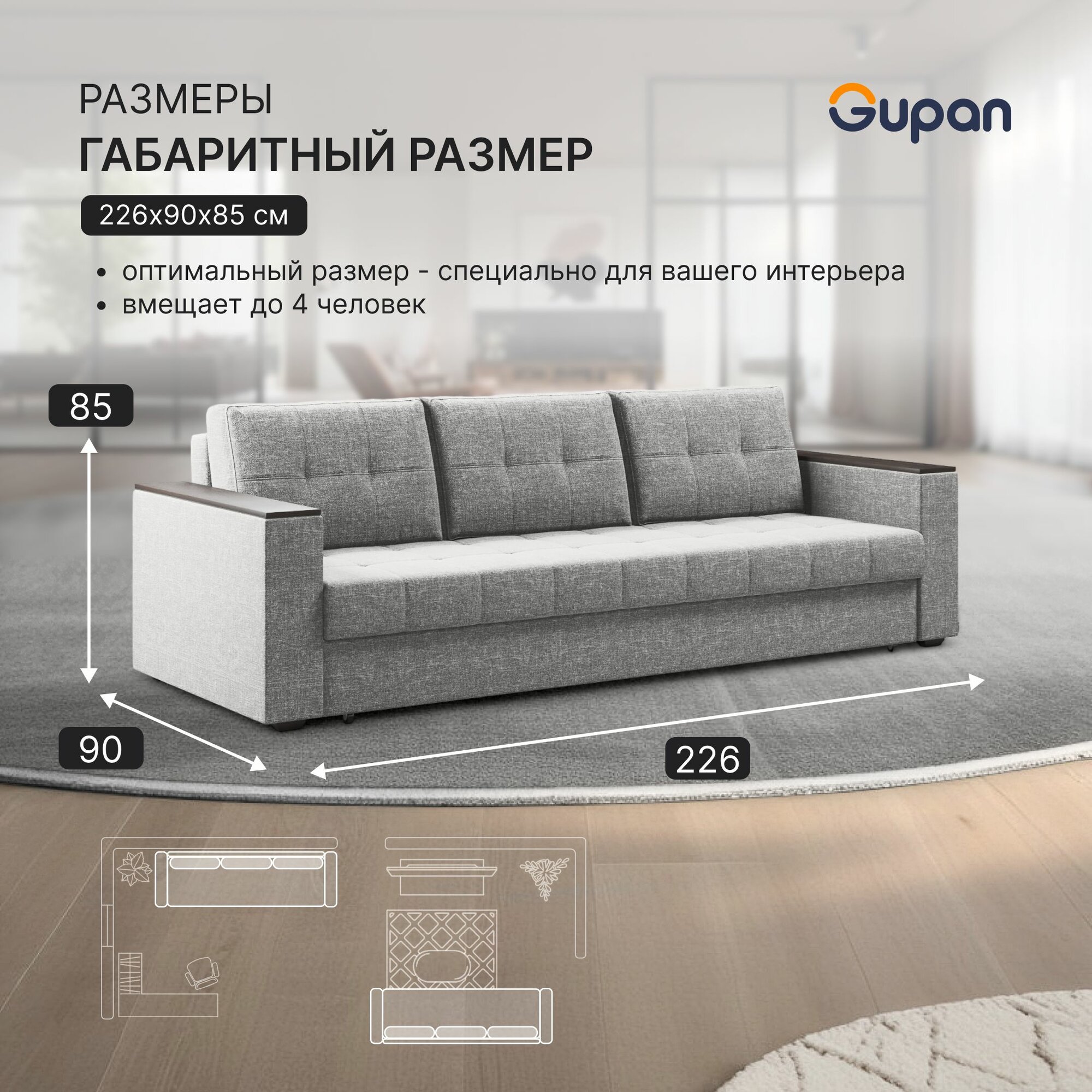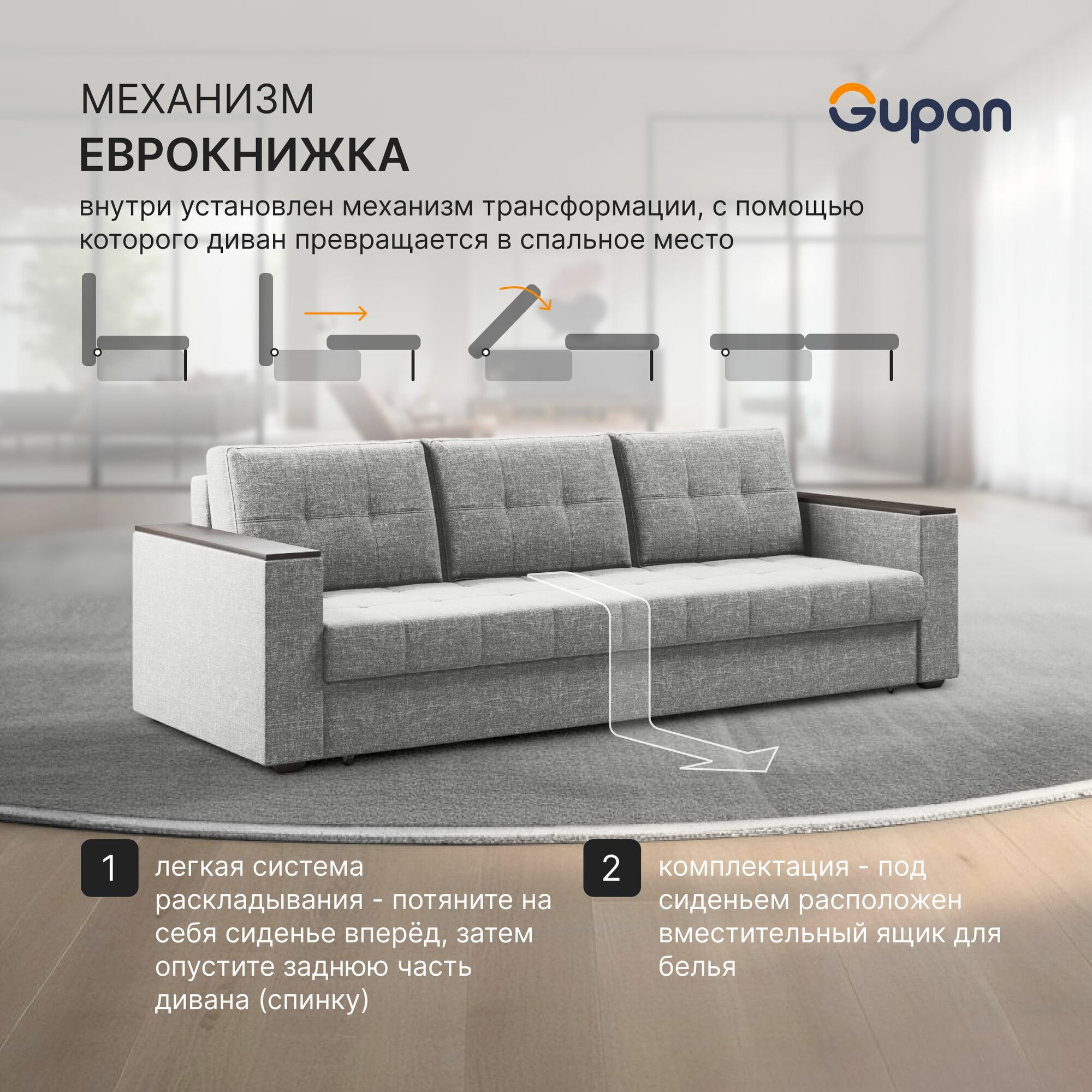 Диван кровать Gupan Атланта Классик Люкс, Рогожка Savana Mouse, раскладной, механизм еврокнижка, беспружинный, с ящиком для белья