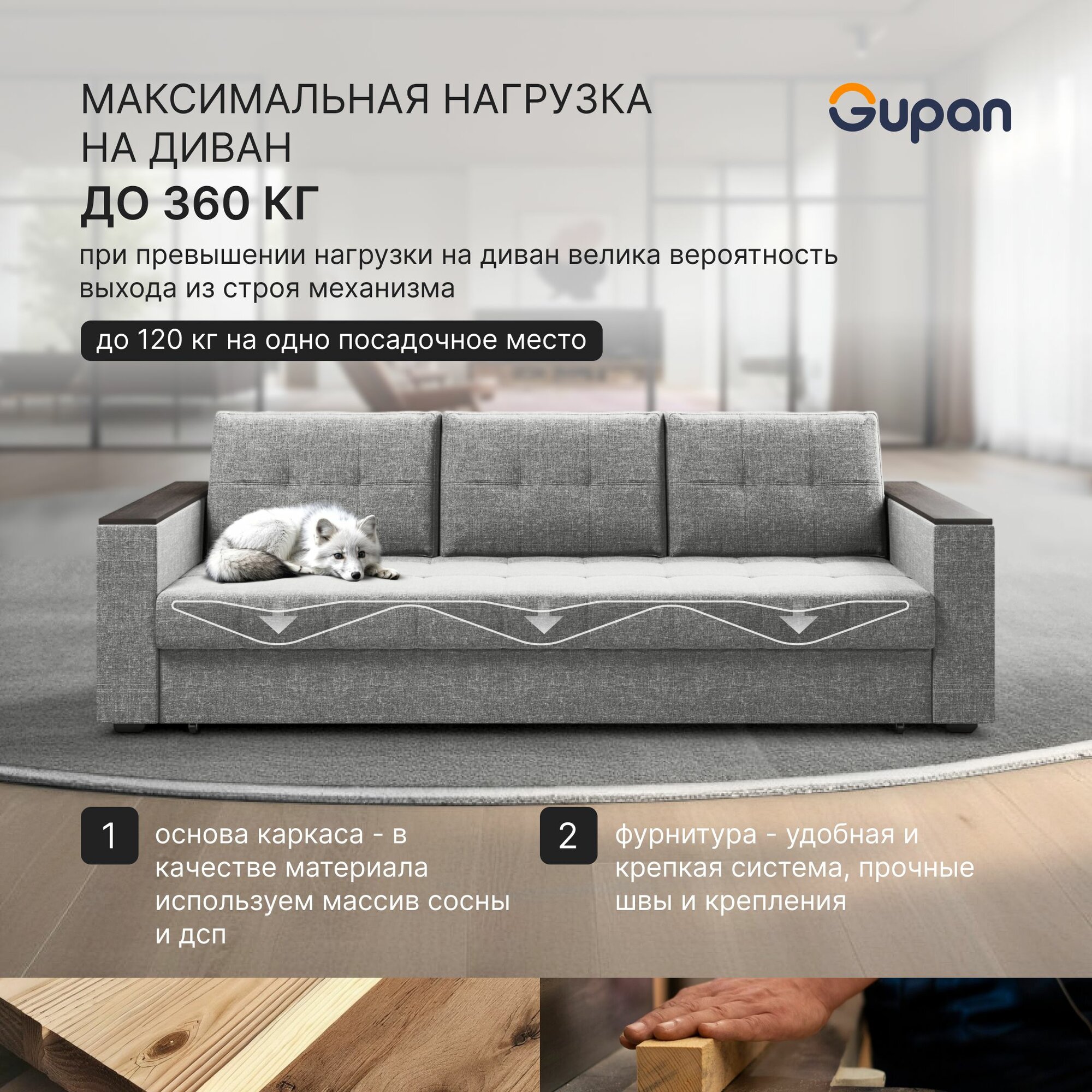 Диван кровать Gupan Алекс Рогожка Savana Ash, раскладной, механизм выкатной, беспружинный, с ящиком для белья