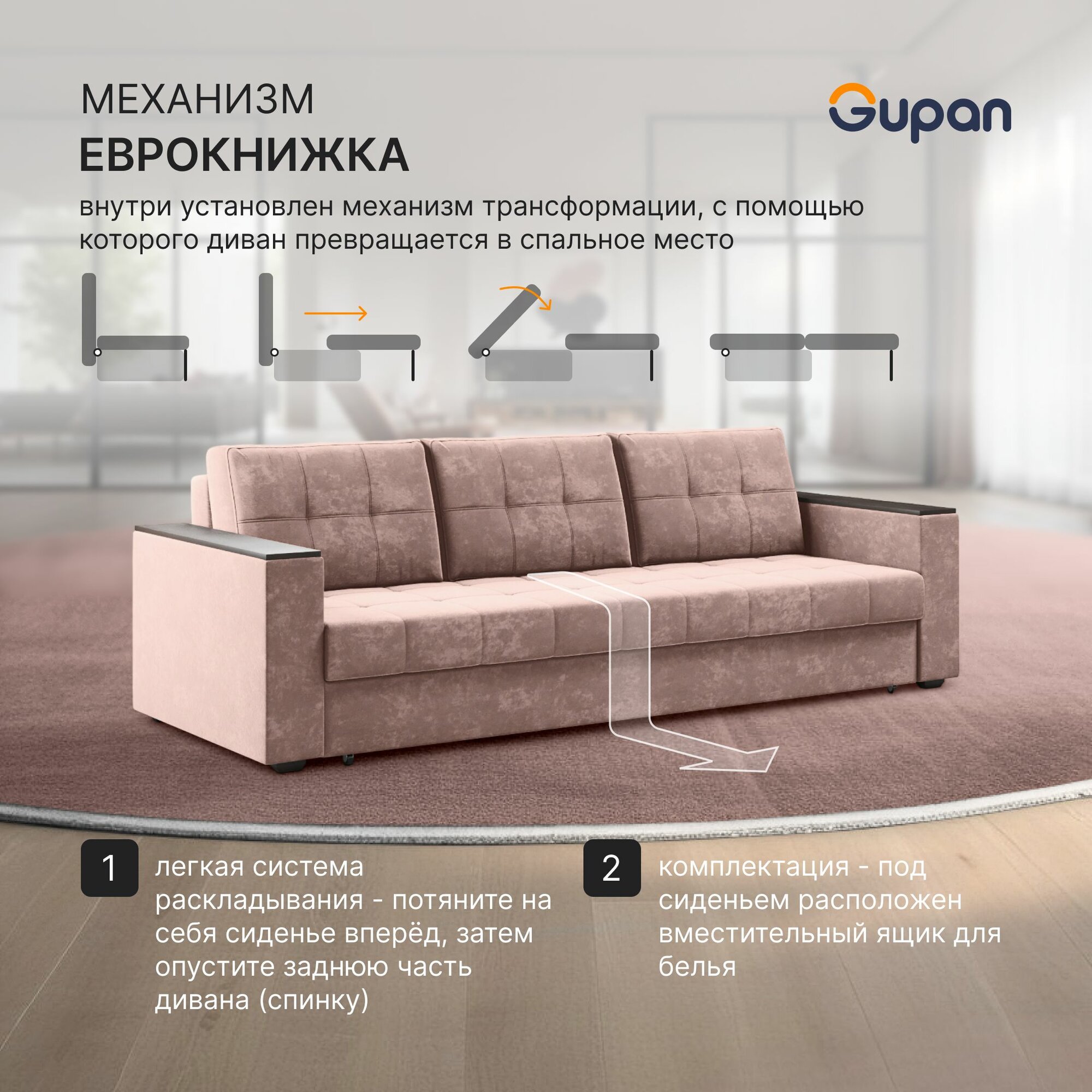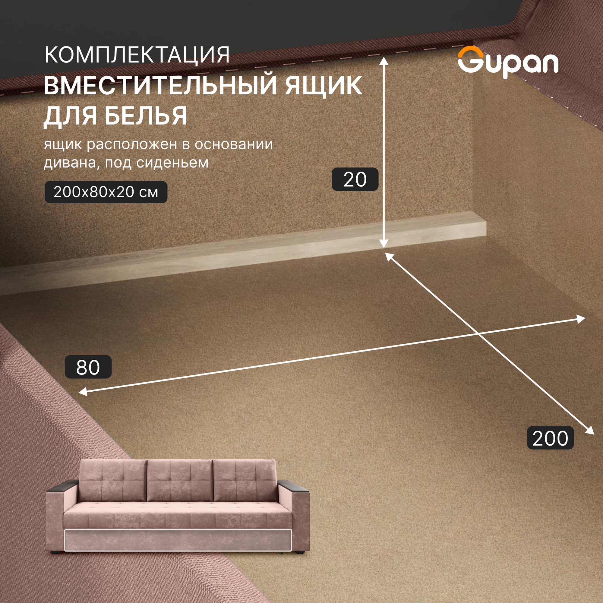 Диван кровать Gupan Атланта Классик Люкс Рогожка Savana Dimrose, раскладной, механизм еврокнижка, беспружинный, с ящиком для белья
