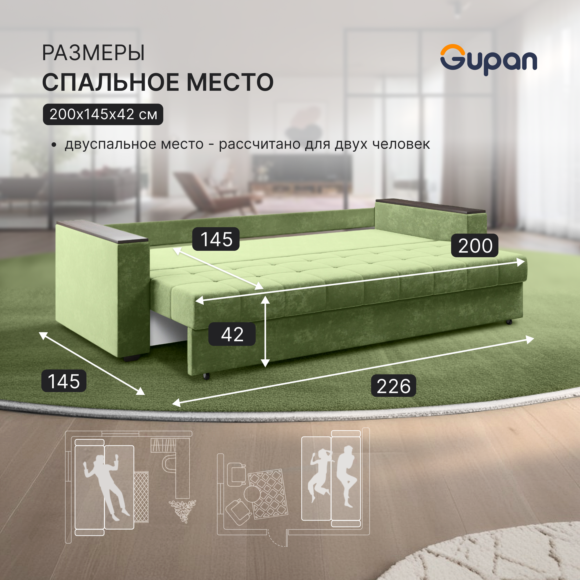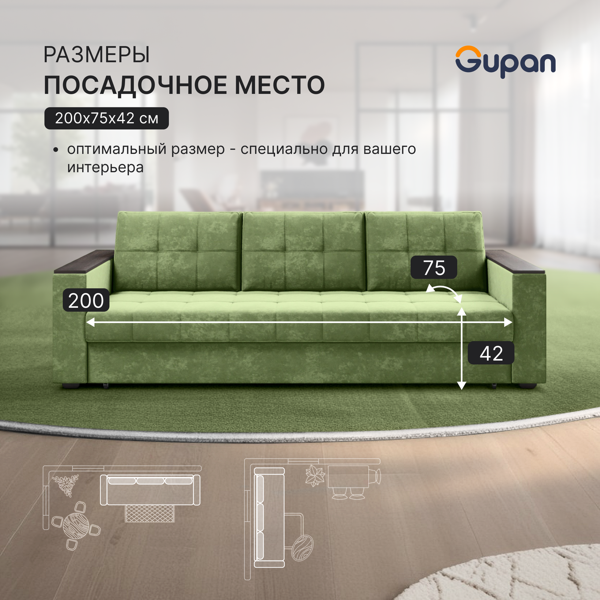 Диван кровать Gupan Атланта Классик Люкс Рогожка Savana Green, раскладной, механизм еврокнижка, беспружинный, с ящиком для белья