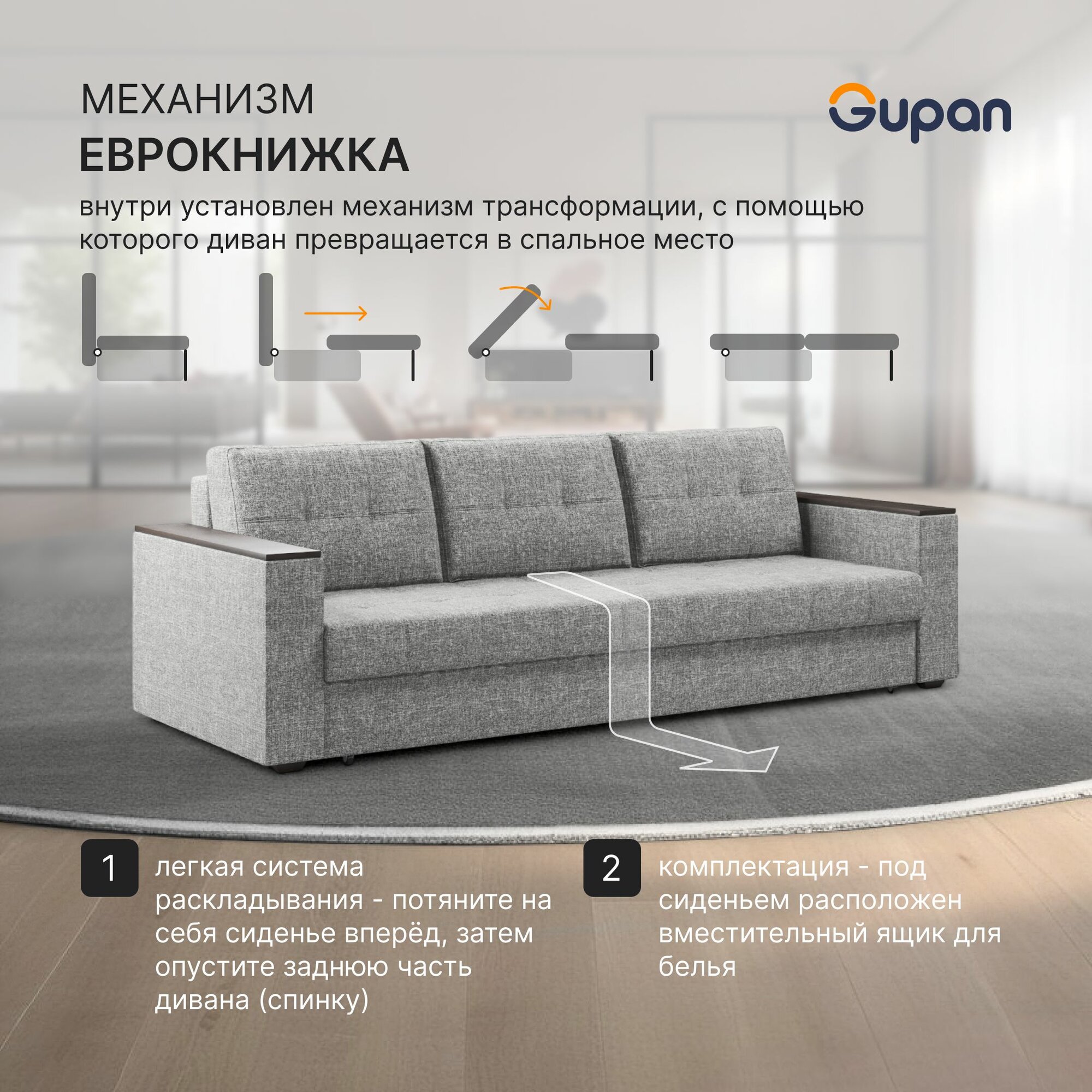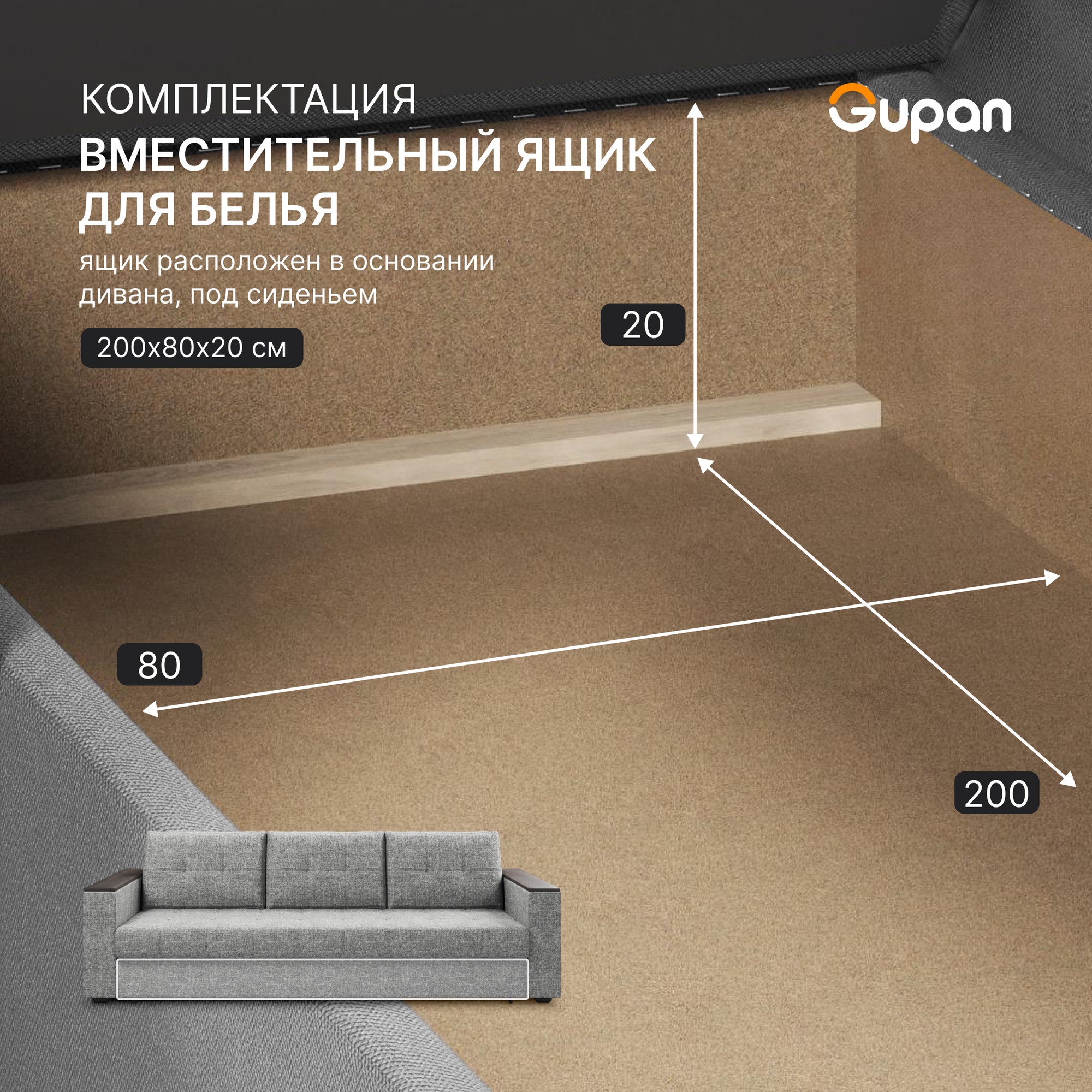Диван кровать Gupan Атланта Классик Люкс, Рогожка Savana Mouse, раскладной, механизм еврокнижка, беспружинный, с ящиком для белья