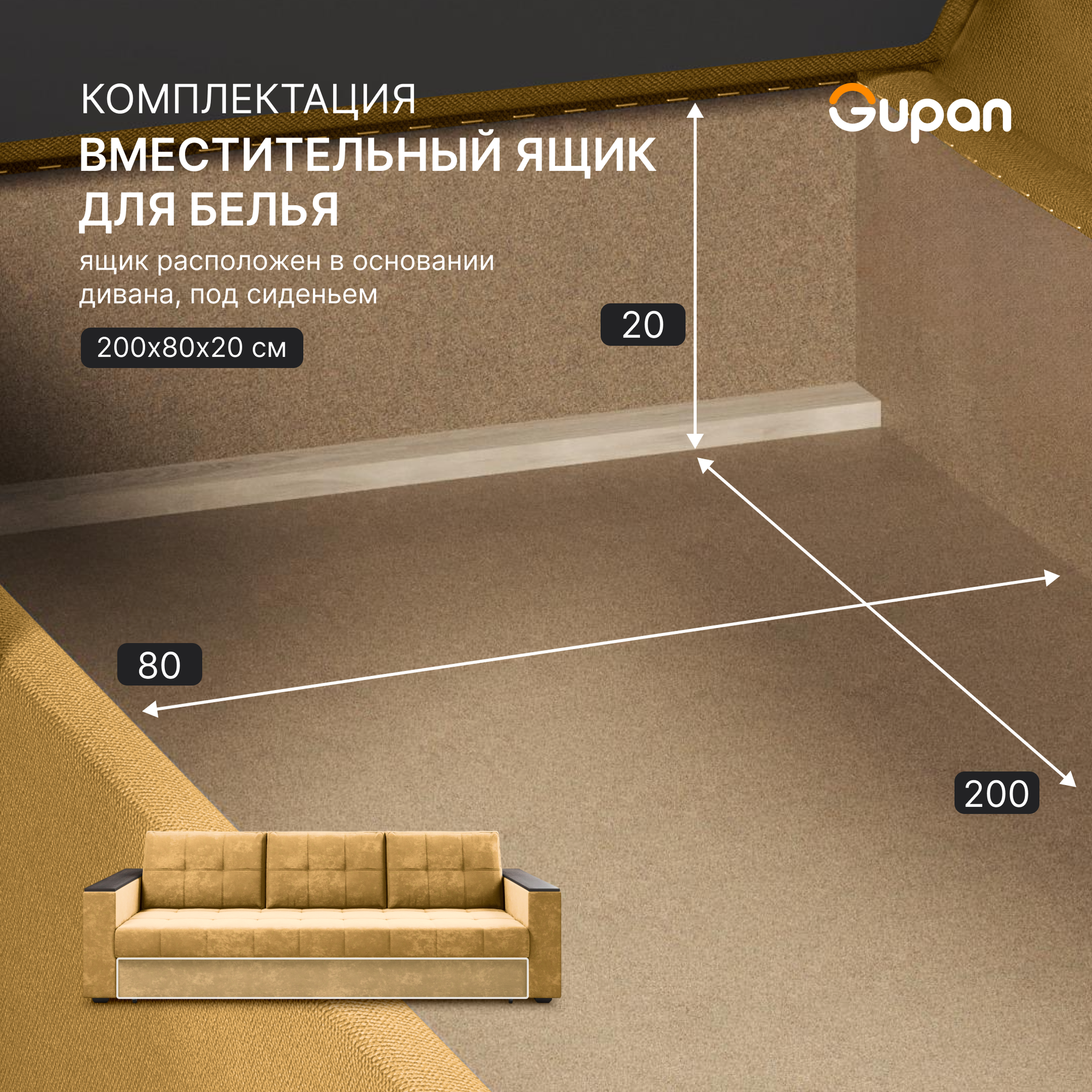 Диван кровать Gupan Атланта Классик Люкс Велюр Bingo Sand, раскладной, механизм еврокнижка, беспружинный, с ящиком для белья