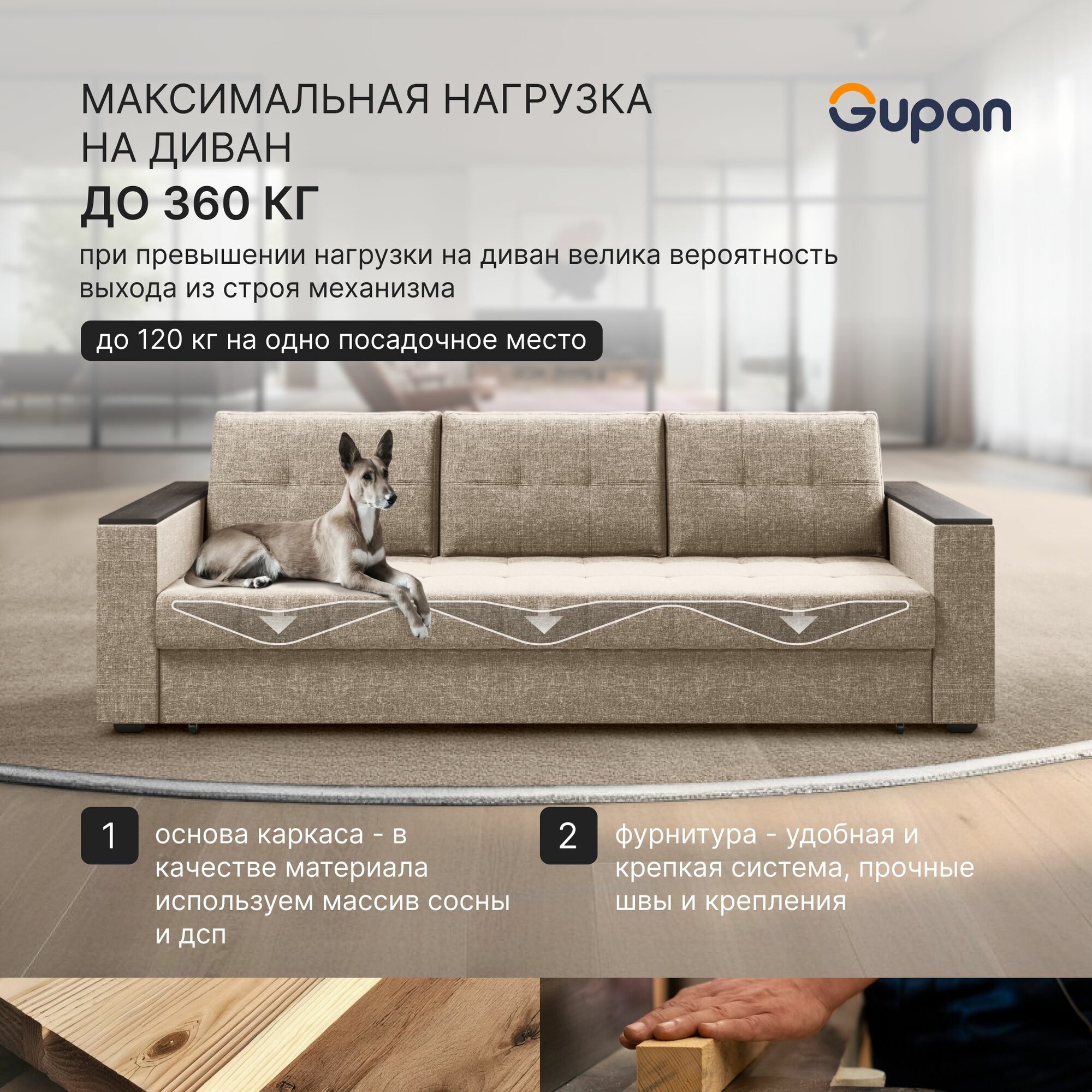 Диван кровать Gupan Алекс Рогожка Бежевая, раскладной, механизм выкатной, беспружинный, с ящиком для белья