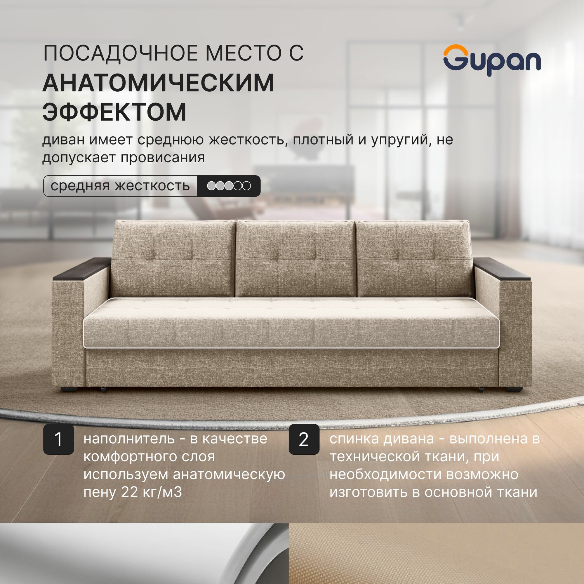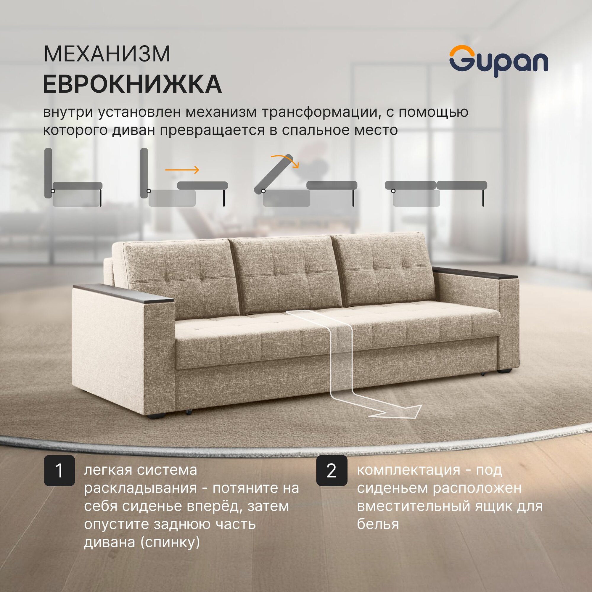 Диван кровать Gupan Атланта Классик Люкс Рогожка Beige, раскладной, механизм еврокнижка, беспружинный, с ящиком для белья