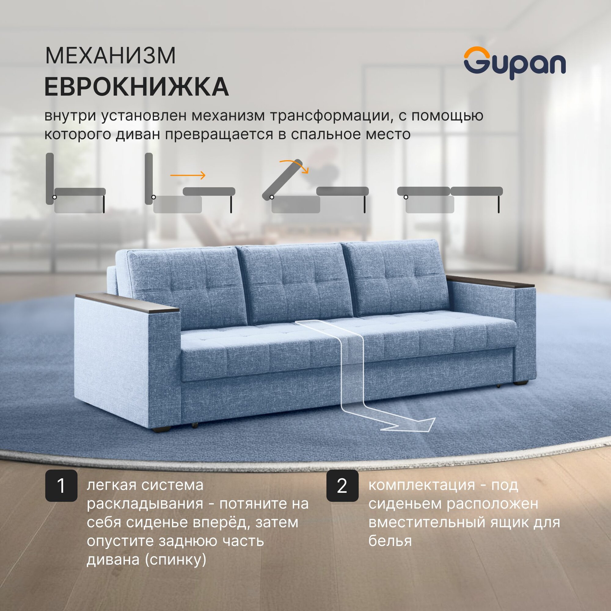 СохранитьДиван кровать Gupan Атланта Классик Люкс, Рогожка Savana Blue, раскладной, механизм еврокнижка, беспружинный, с ящиком для белья интересное: