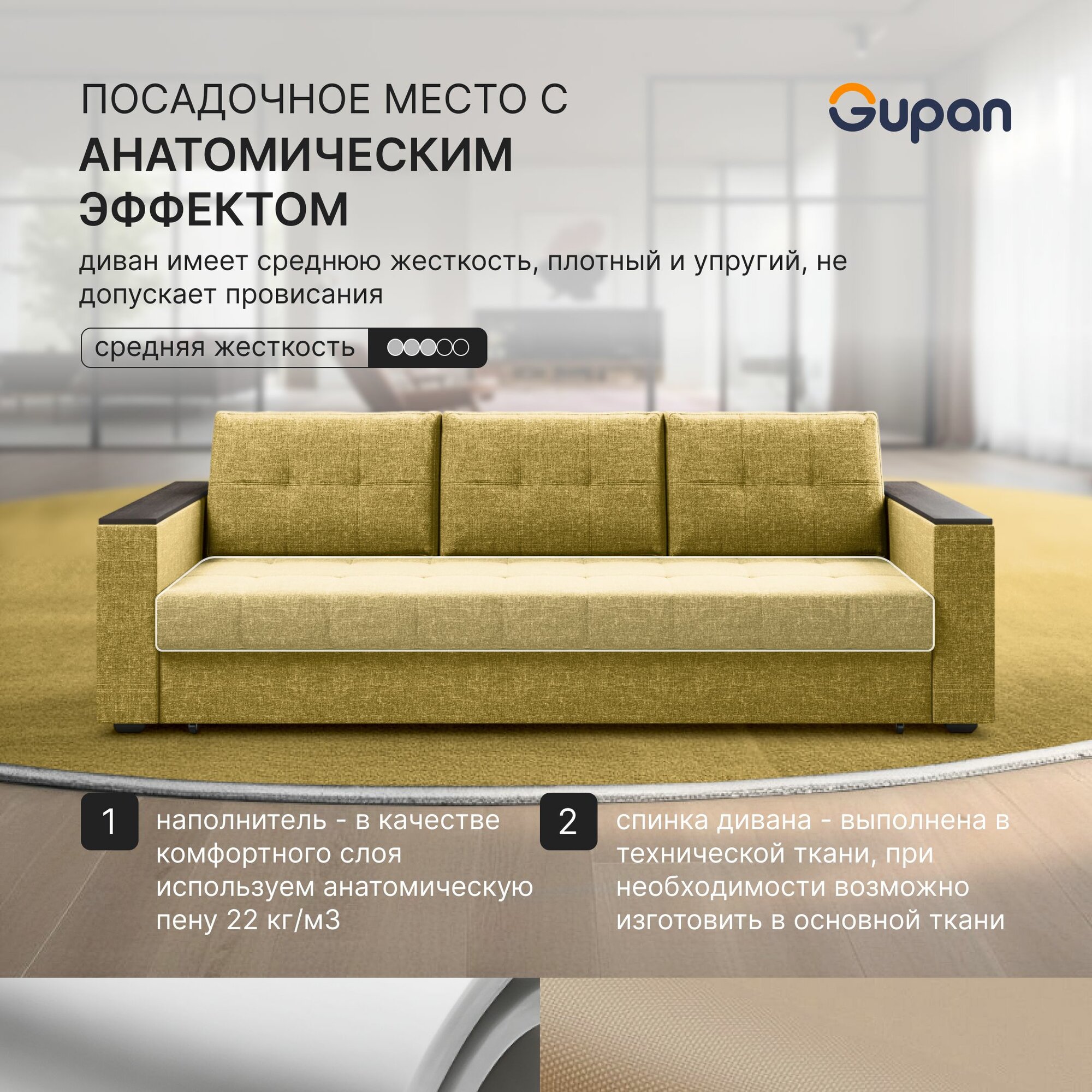 СохранитьДиван кровать Gupan Атланта Классик Люкс Рогожка Savana Yellow, раскладной, механизм еврокнижка, беспружинный, с ящиком для белья интересное: