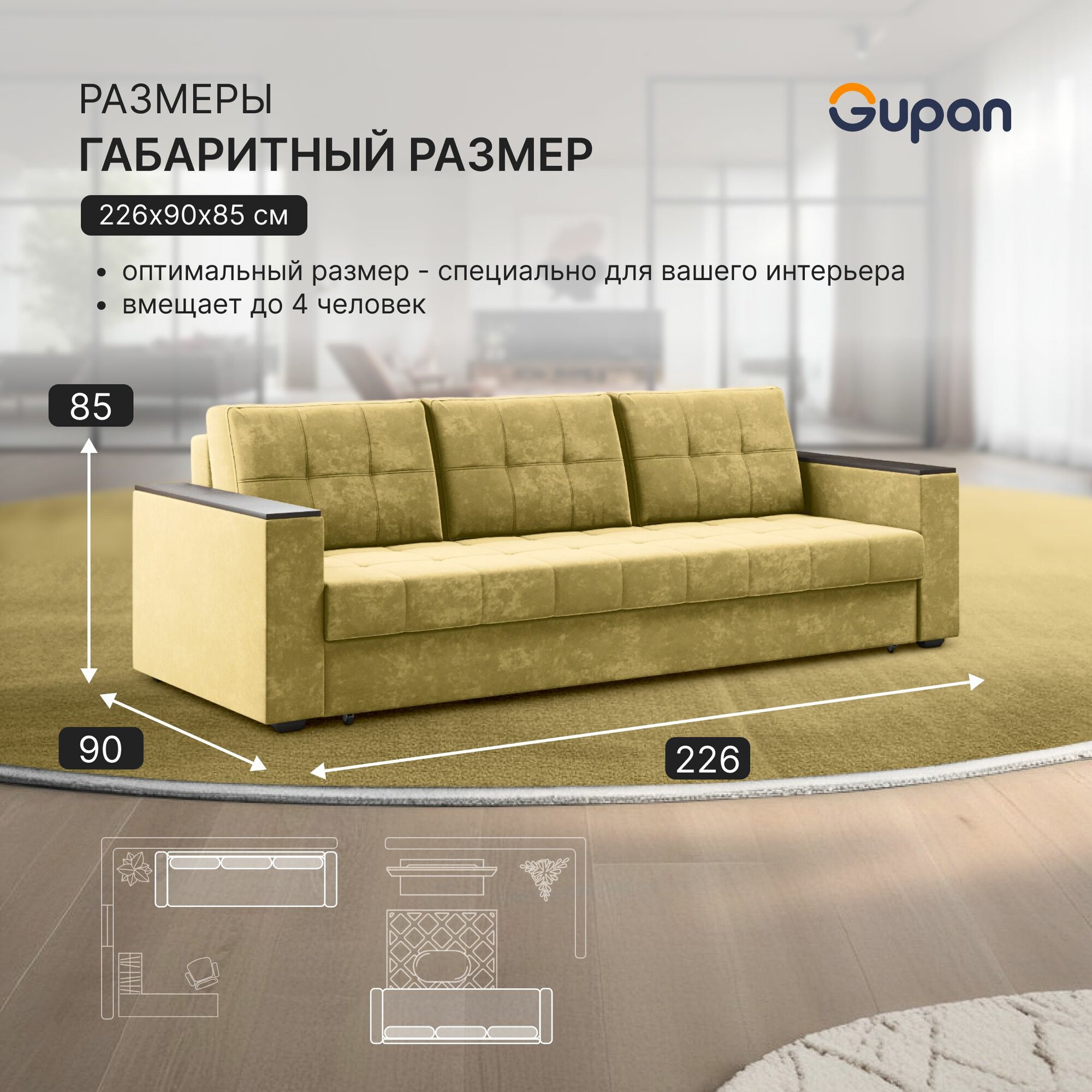 Купить Диван кровать Gupan Атланта Классик Люкс Велюр Bingo Yellow, раскладной, механизм еврокнижка, беспружинный, с ящиком для белья