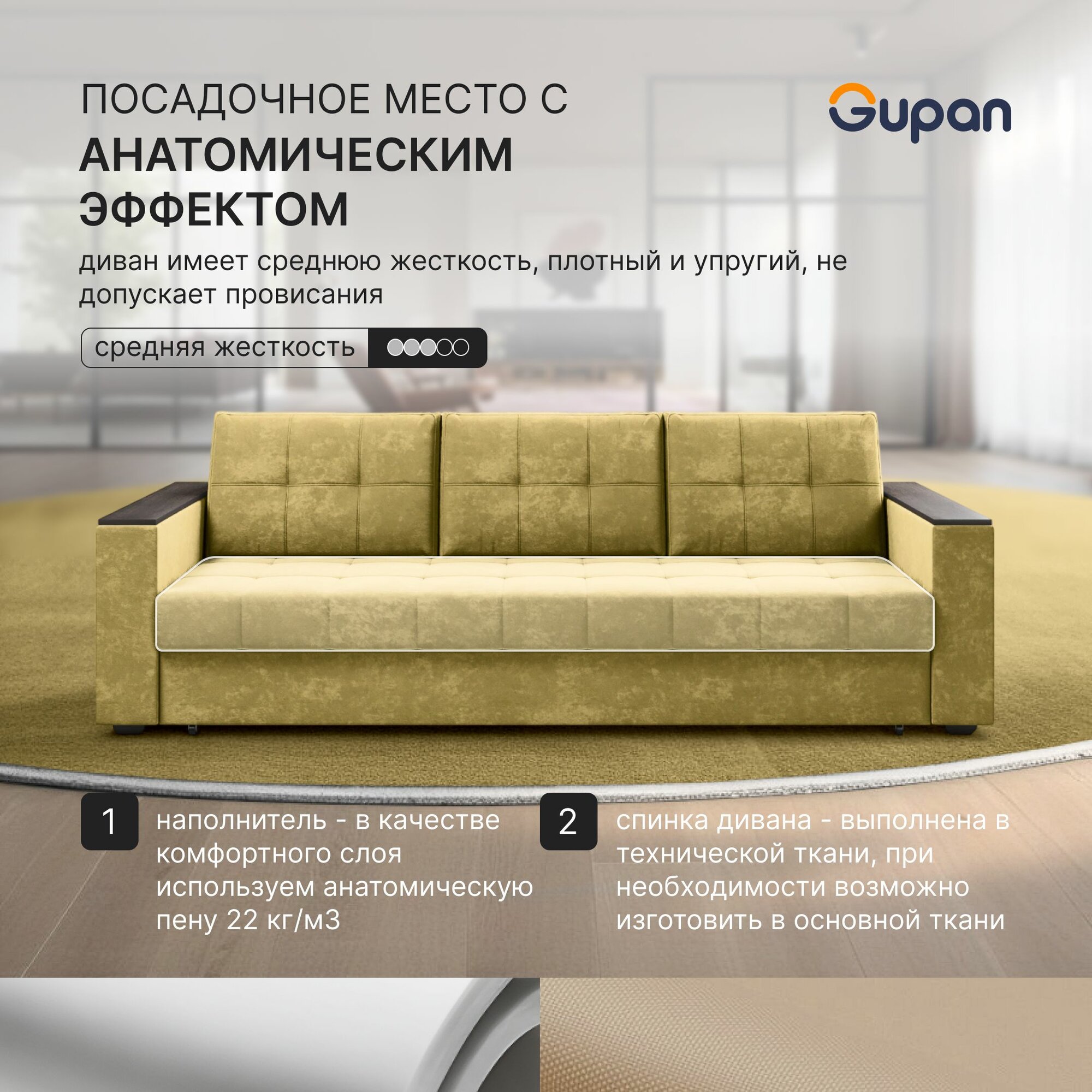 Диван кровать Gupan Атланта Классик Люкс Рогожка Savana Yellow, раскладной, механизм еврокнижка, беспружинный, с ящиком для белья