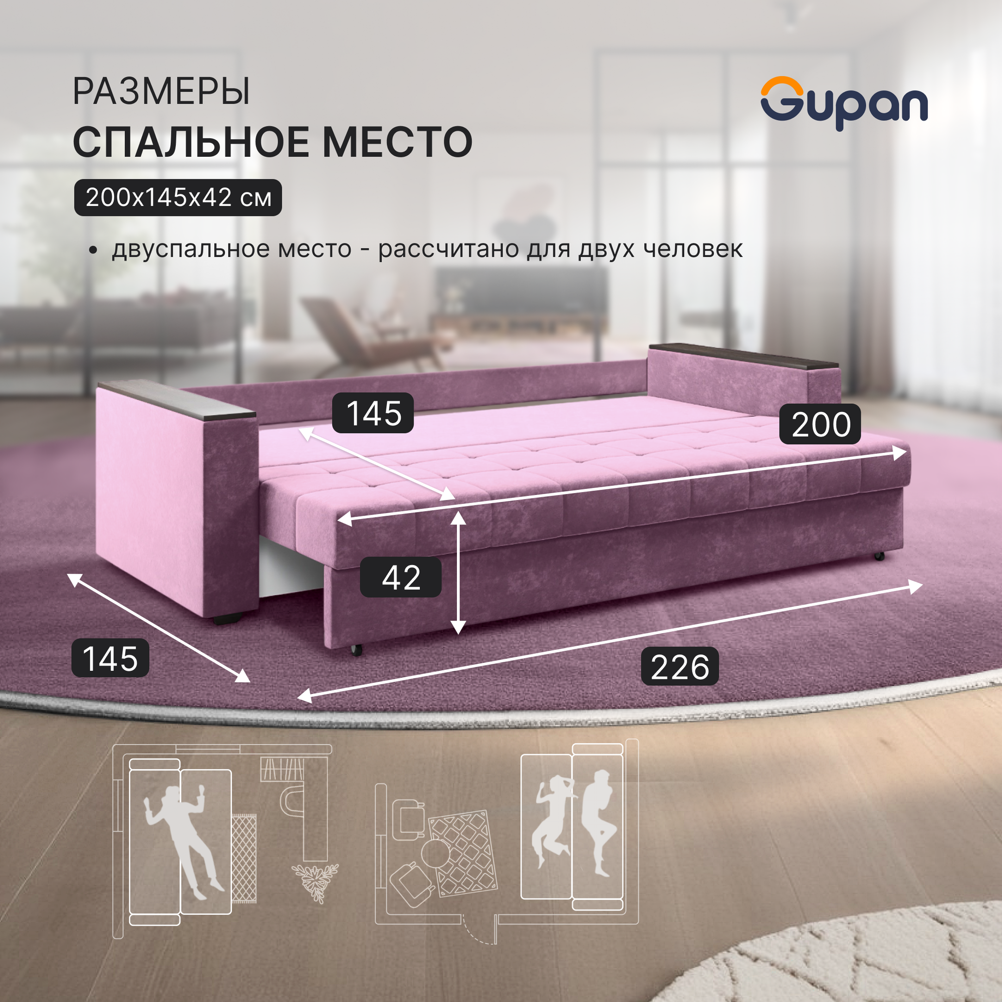 Диван кровать Gupan Алекс Велюр Amigo Berry, раскладной, механизм выкатной, беспружинный, с ящиком для белья