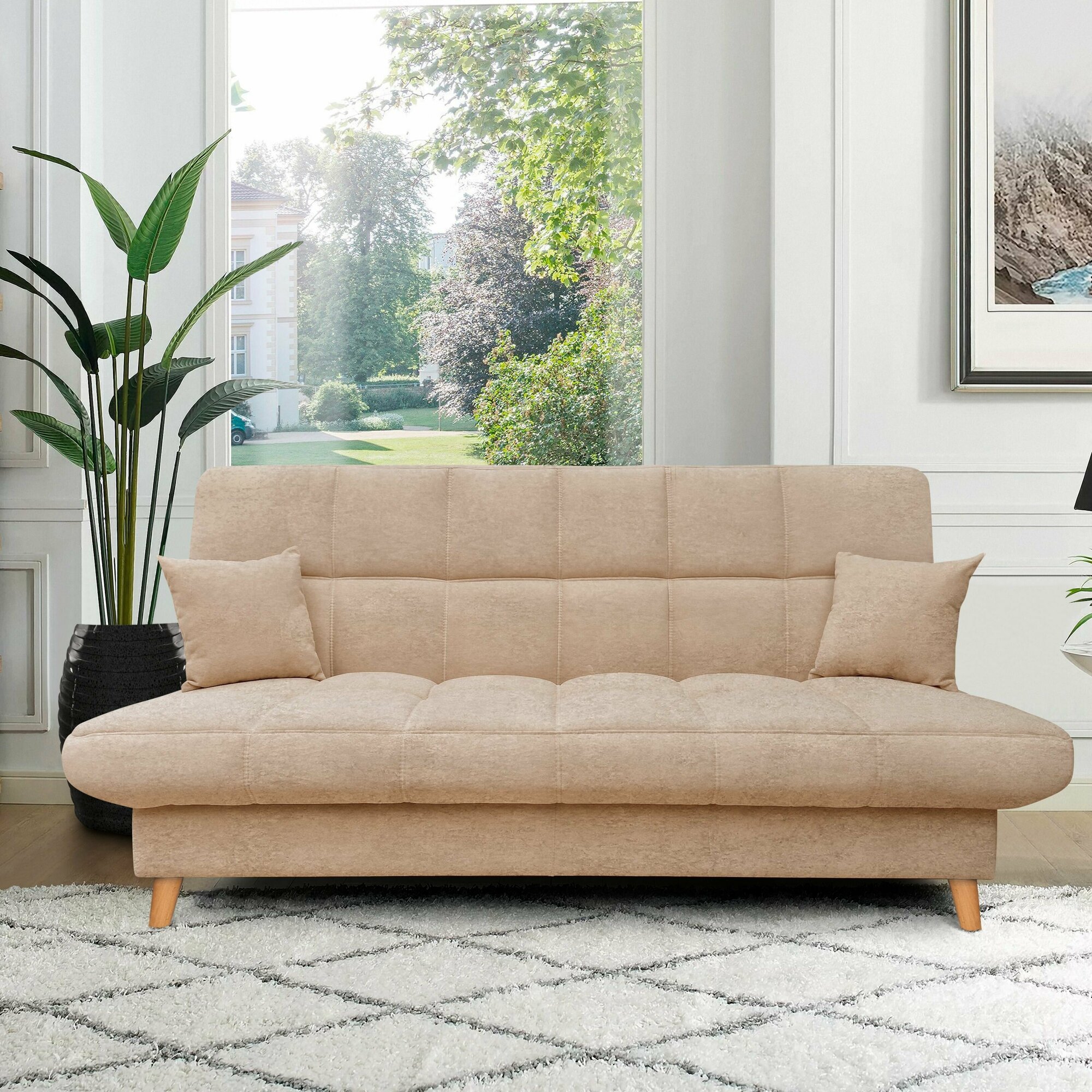 Стоун-прямой раскладной диван кровать(бежевый)со спальным местом с подушками с ящиком для хранения, без подлокотников, механизм клик-кляк, 200х93х99 см