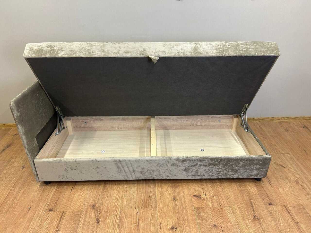 Диван-кровать, тахта серая с ящиком для белья, односпальная, велюр